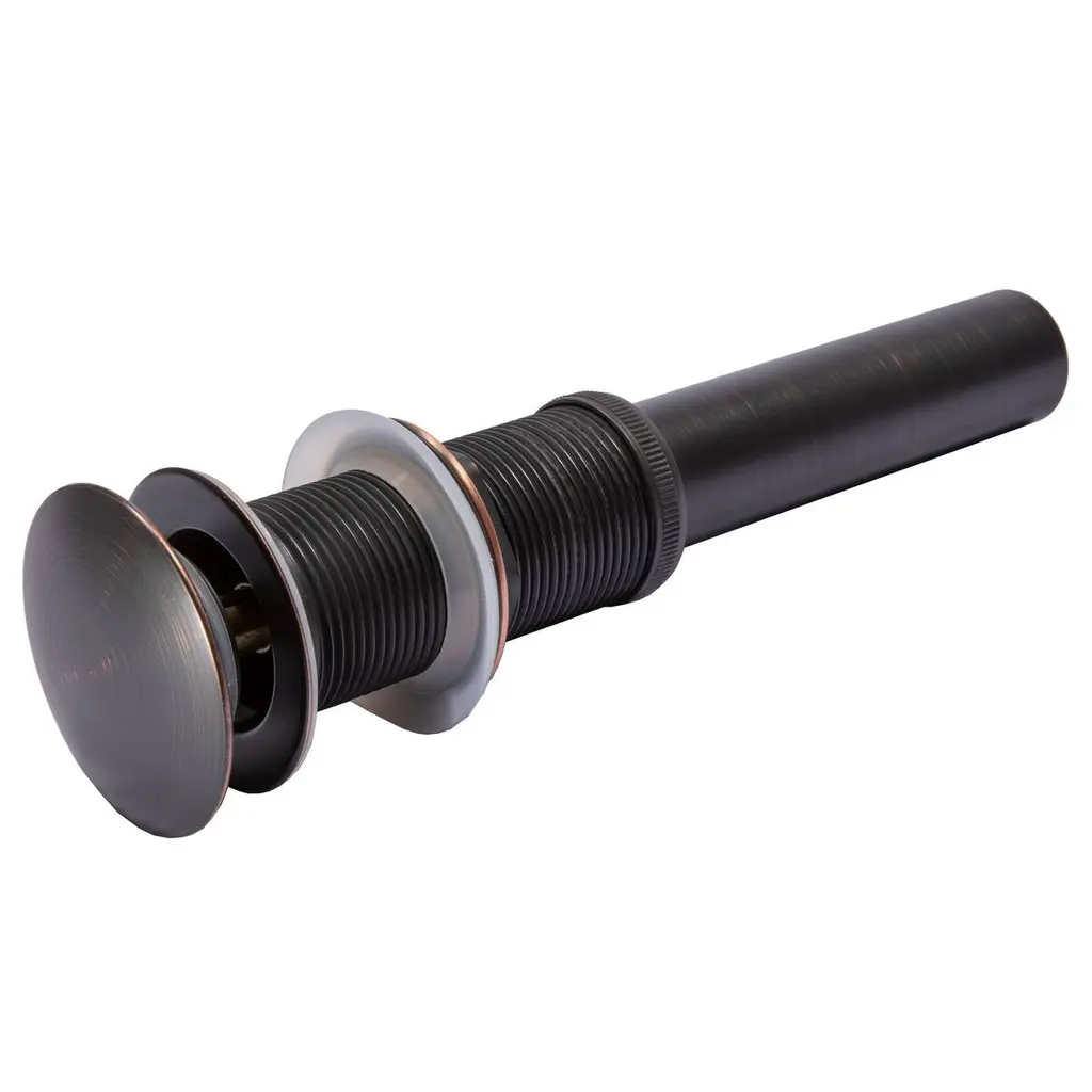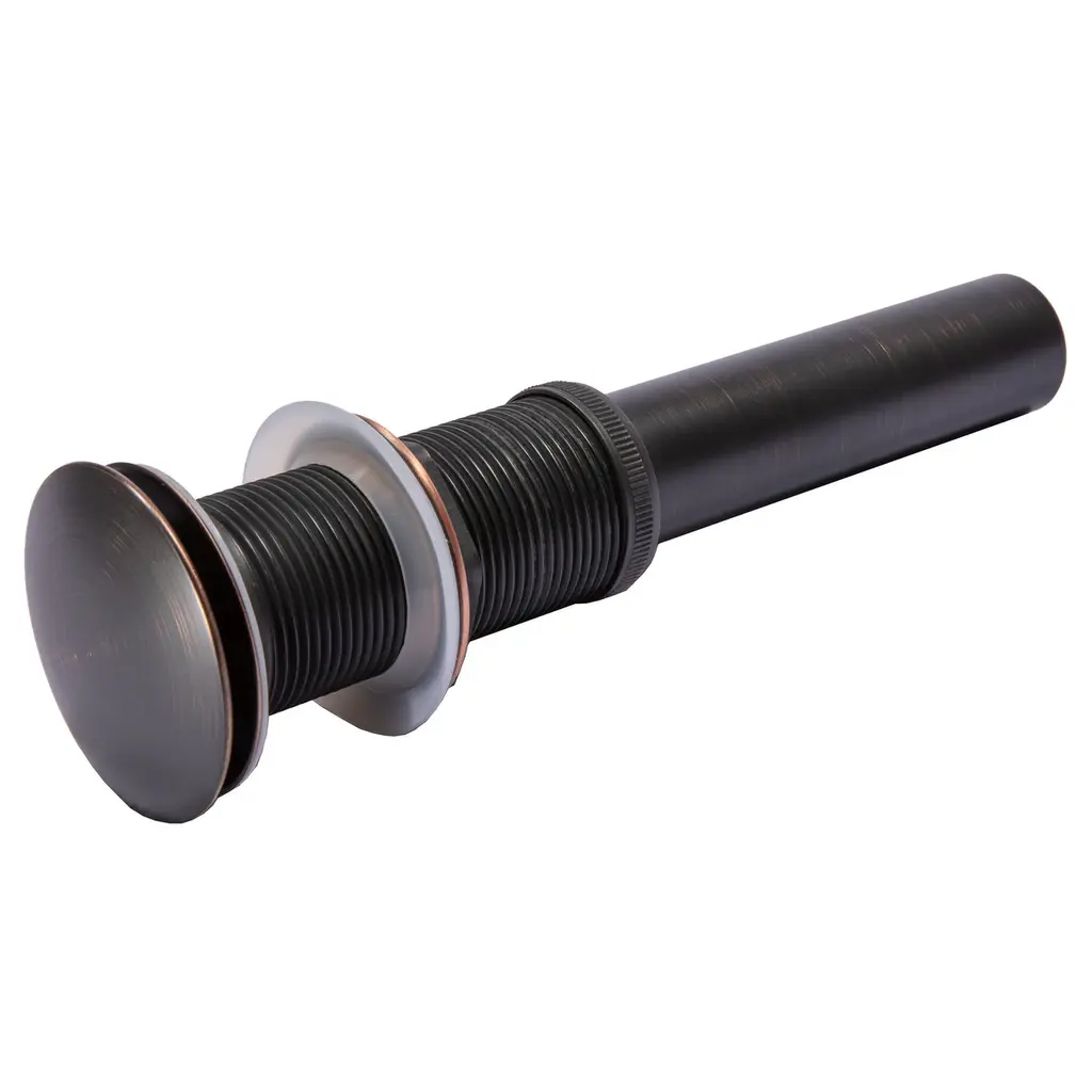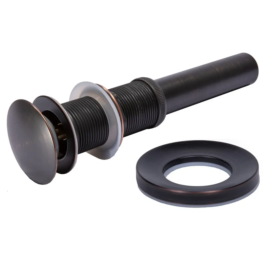 The 1 5/8" Umbrella Pop Up Drain and Mounting Ring in Oil Rubbed Bronze from Eden Bath is a stylish and functional addition to your bathroom sink. This designer drain is made with high-quality materials and features a soft-touch operation. Simply press down on the top of the drain to open or close it. The spring-loaded mechanism and rubber gasket ensure a tight seal, preventing any leaks. This drain is designed to work with most vessel sinks that have a drain hole 1 5/8" in diameter or larger, and a rounded sink bottom. No separate popup drain lever is required, making it easy and convenient to use. Please note that this drain does not have an overflow.Features: