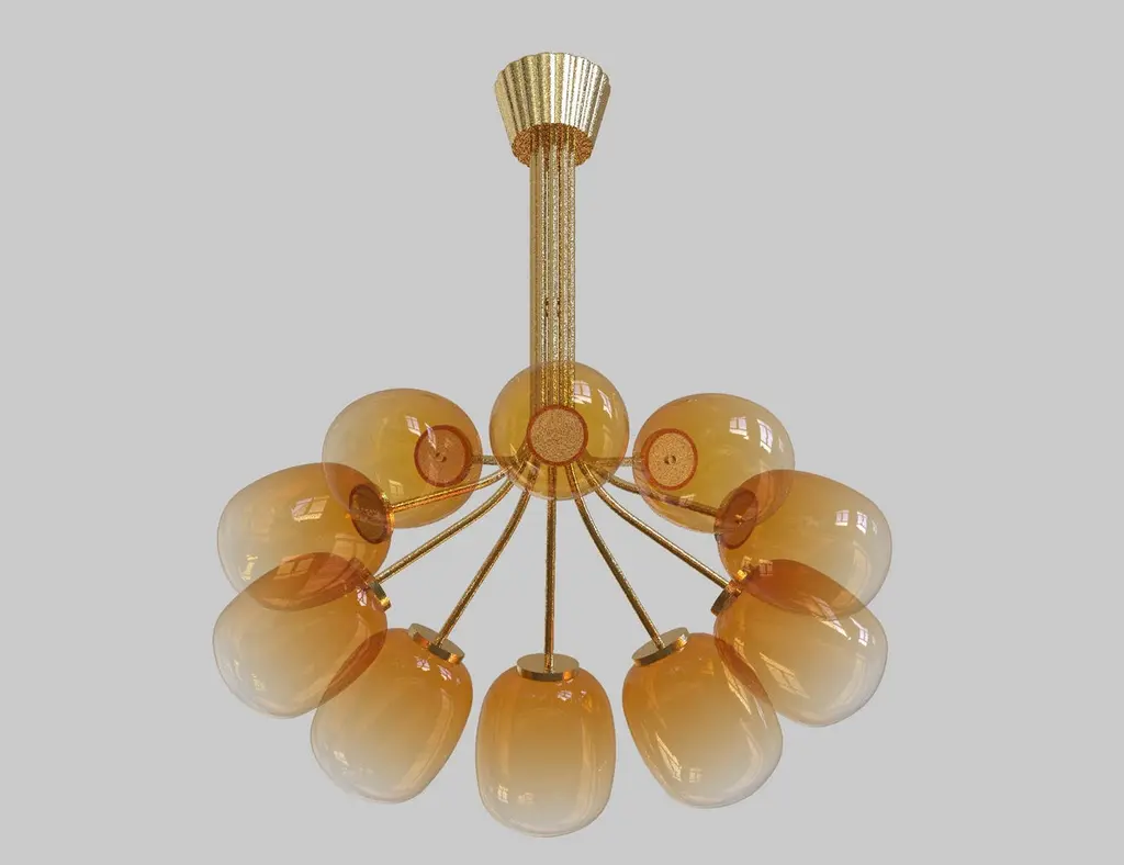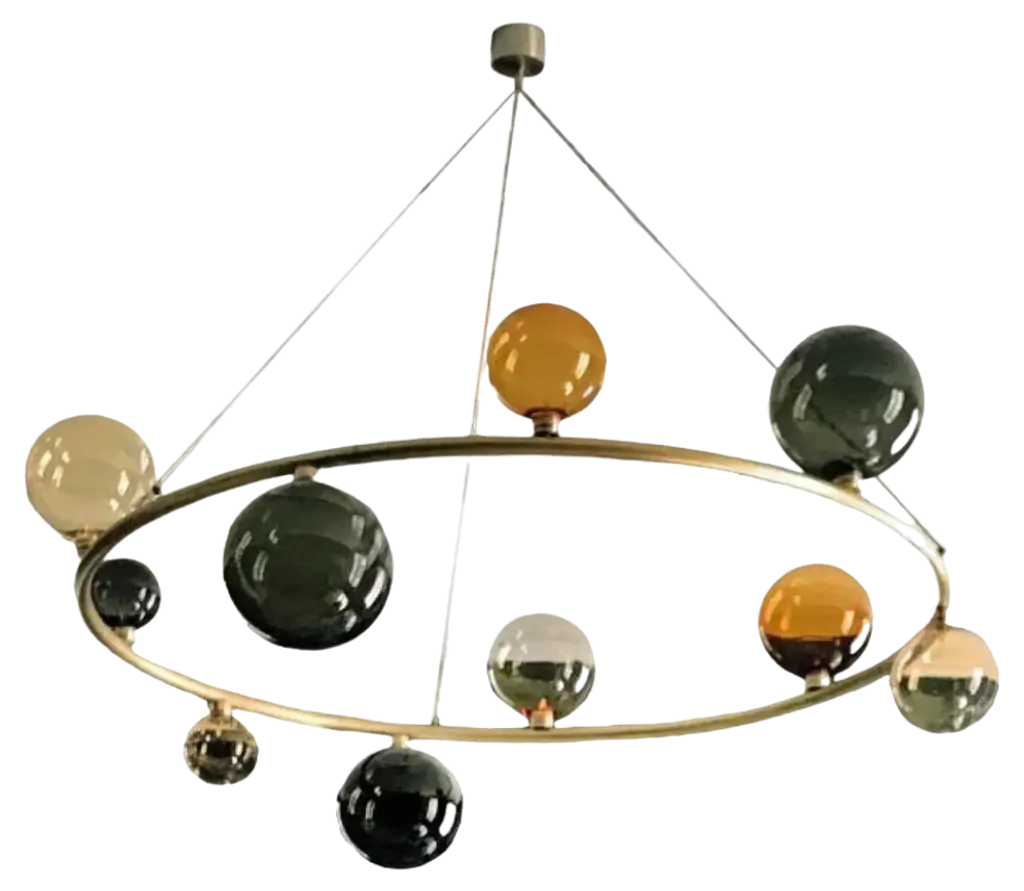 10 Module Umbrella Candy Chandelier With Brass And Hand Blown Glass