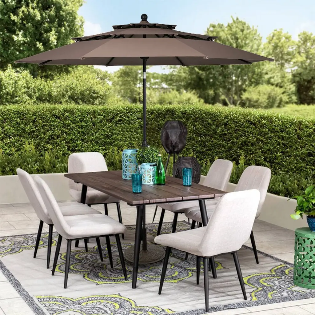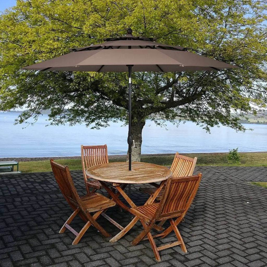 10' X 10' Double Vented 3-tier Patio Market Table Umbrella Tan - Wellfor: Aluminum Frame, Crank Lift & Tilt