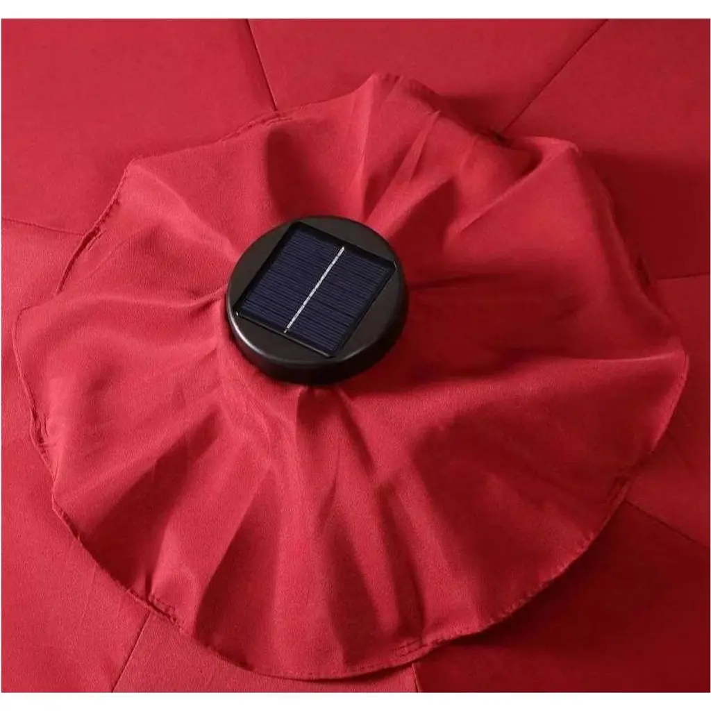 10' X 10' Patio Led Solar Umbrella With Tilt And Crank Burgundy - Wellfor: Hexagon Shape, Powder-coated, Water-resistant