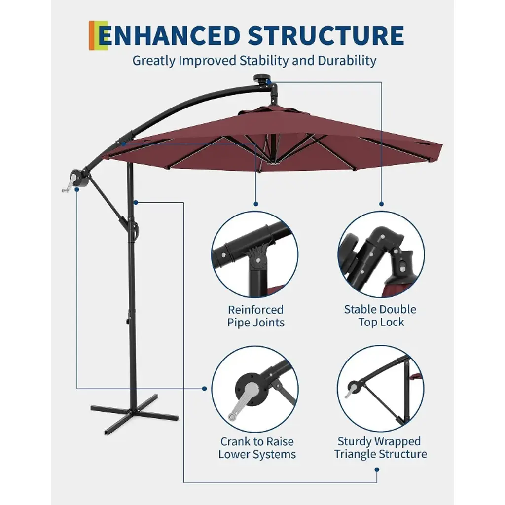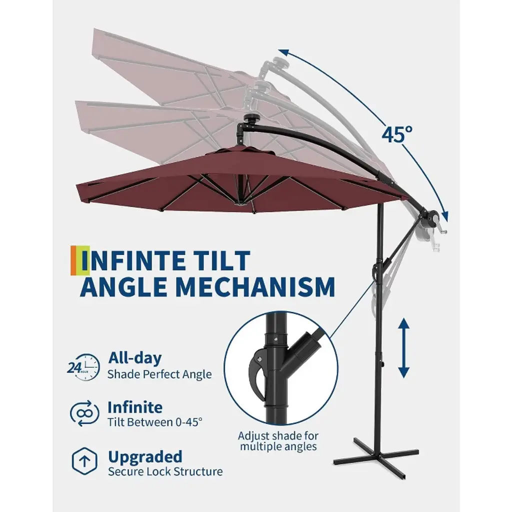 10ft Hanging Cantilever Umbrella With 360 Degree Rotation, 8 Ribs Offset Patio Umbrella With Tilt Adjustment, For Backyard, Garden And Poolside, Red