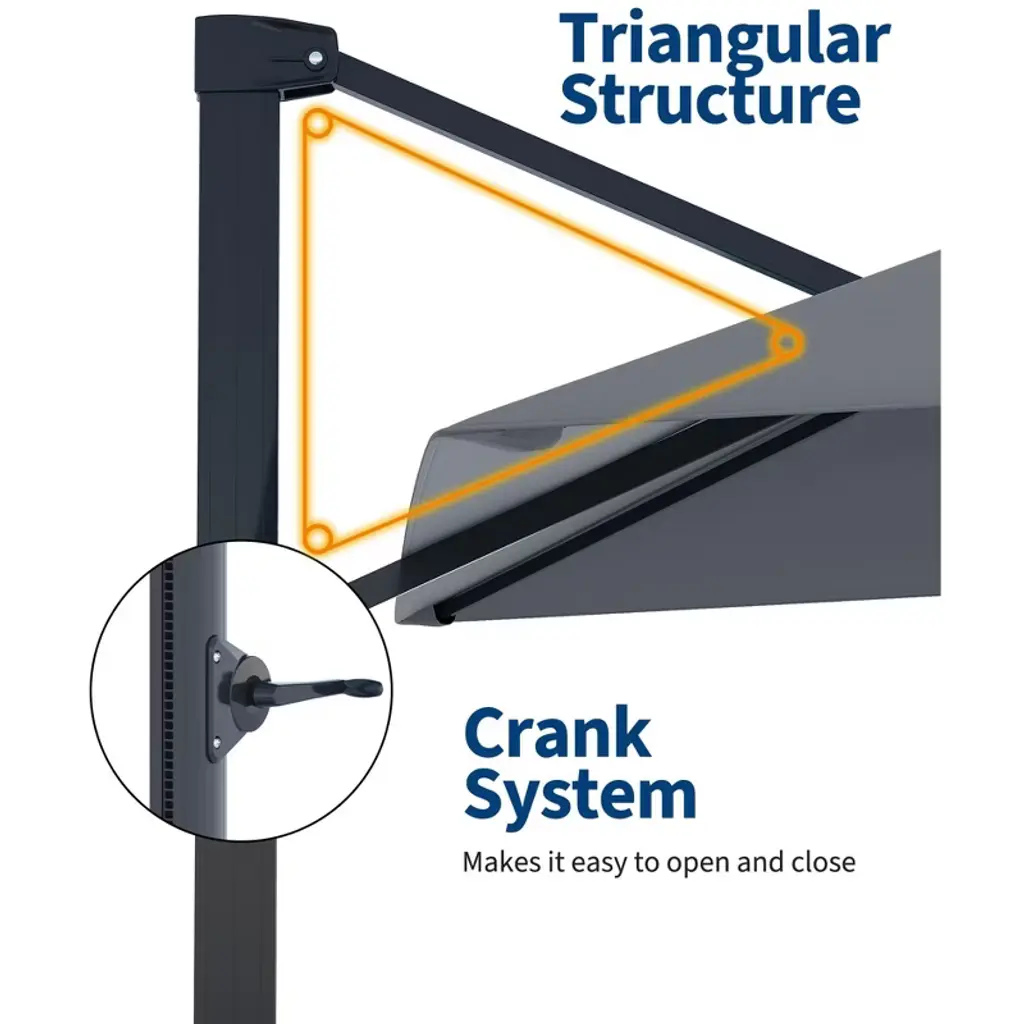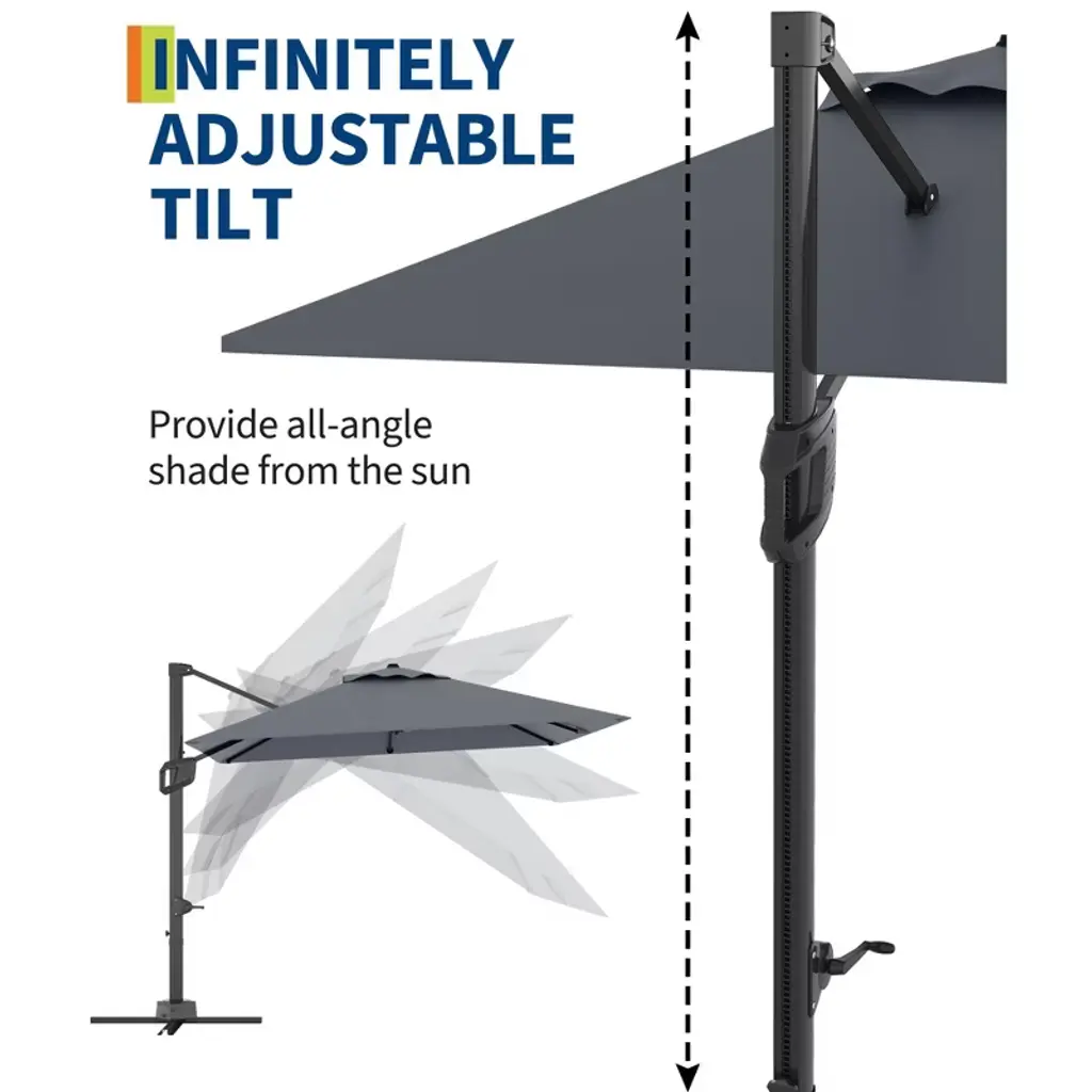 10ft Large Cantilever Patio Umbrella - 360° Rotating, Aluminum Outdoor Shade For Garden, Deck, Pool, Gray