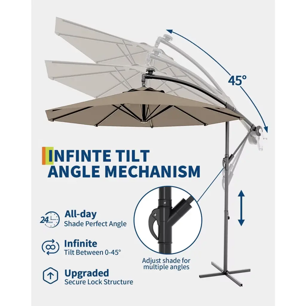 10ft Offset Patio Umbrella, 360° Rotating Cantilever Hanging Umbrella With Upf 50+ & Easy Tilt Brown