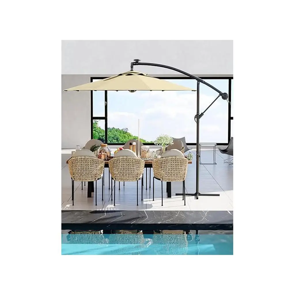 10ft Offset Patio Umbrella - 360° Rotation & Easy Tilt Cantilever Design, Windproof Round Canopy For Poolside/backyard/garden,beige