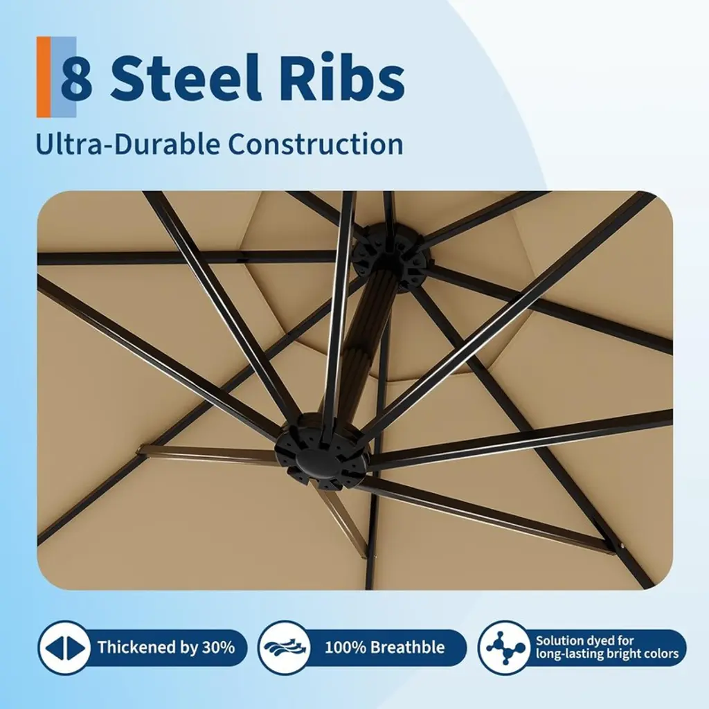 【Enhanced Wind-ResisBrownt Ventilation】Designed with a vented canopy, our pool umbrella allows airflow to reduce wind pressure, increasing overall stability while keeping you cool on hot summer days. 8 Steel ribs with reinforced end screws prevent canopy sagging and enhance structural integrity. 【Easy to Use】Effortlessly open and close your table umbrella outdoor patio with a user-friendly crank handle system. The convenient tilt & lift function allows you to adjust the angle and hight for optimal shade throughout the day, making this patio table umbrella perfect for any sun-exposed outdoor space.