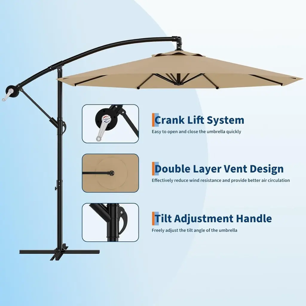 10ft Offset Patio Umbrella - Cantilever Design With Easy Tilt & Lift, Uv Protection For Pool/deck/garden,gray
