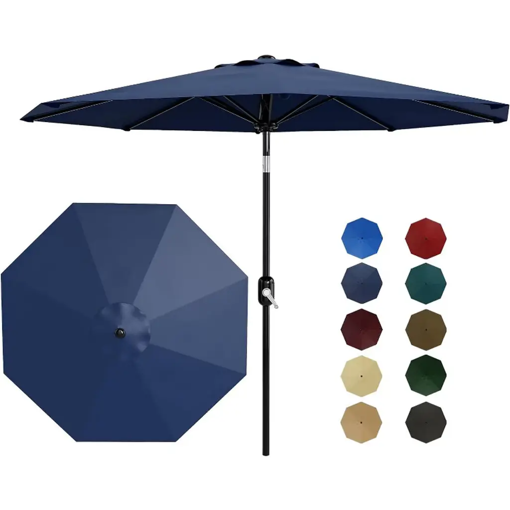 10ft Patio Umbrella - 8 Sturdy Ribs Outdoor Table Umbrella With Crank Lift & Push Button Tilt