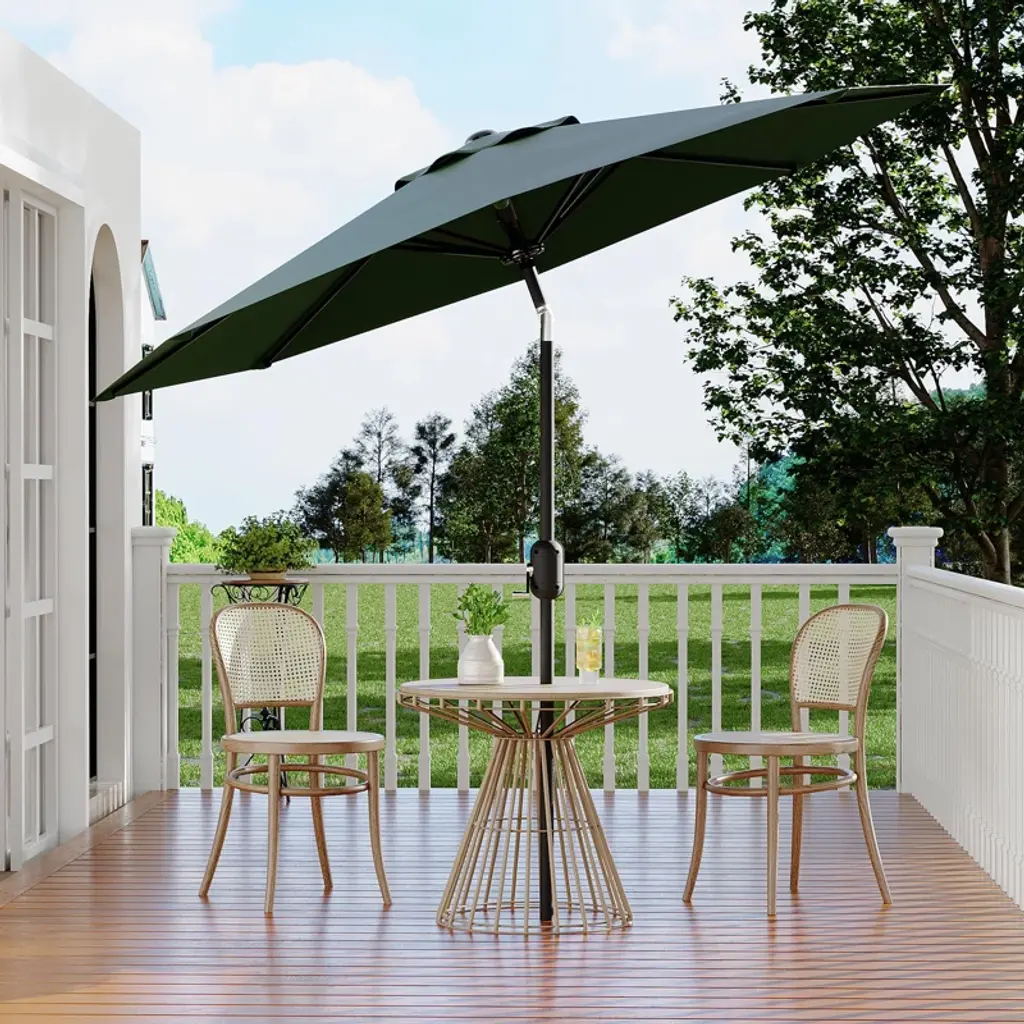 10ft Patio Umbrella, Table Umbrella Outdoor Patio With Crank Lift & Push Button Tilt, 8 Sturdy Ribs For Yard, Deck, Pool -Dark Green
