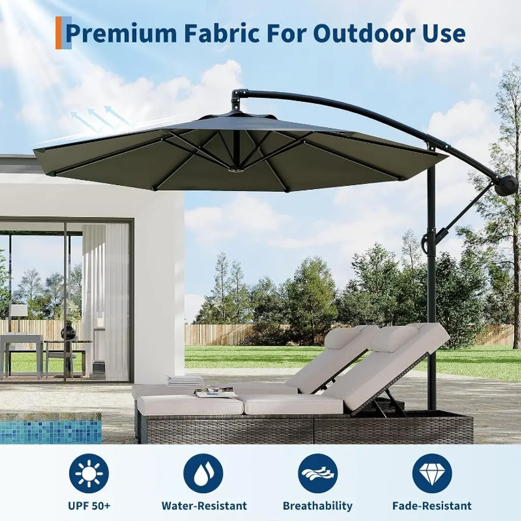Jojoka 10FT Offset Patio Umbrella, Cantilever Umbrella with Easy Lift & Tilt Adjustment, 8 Ribs Sun umbrella UV Protection for Backyard, Pool, Garden