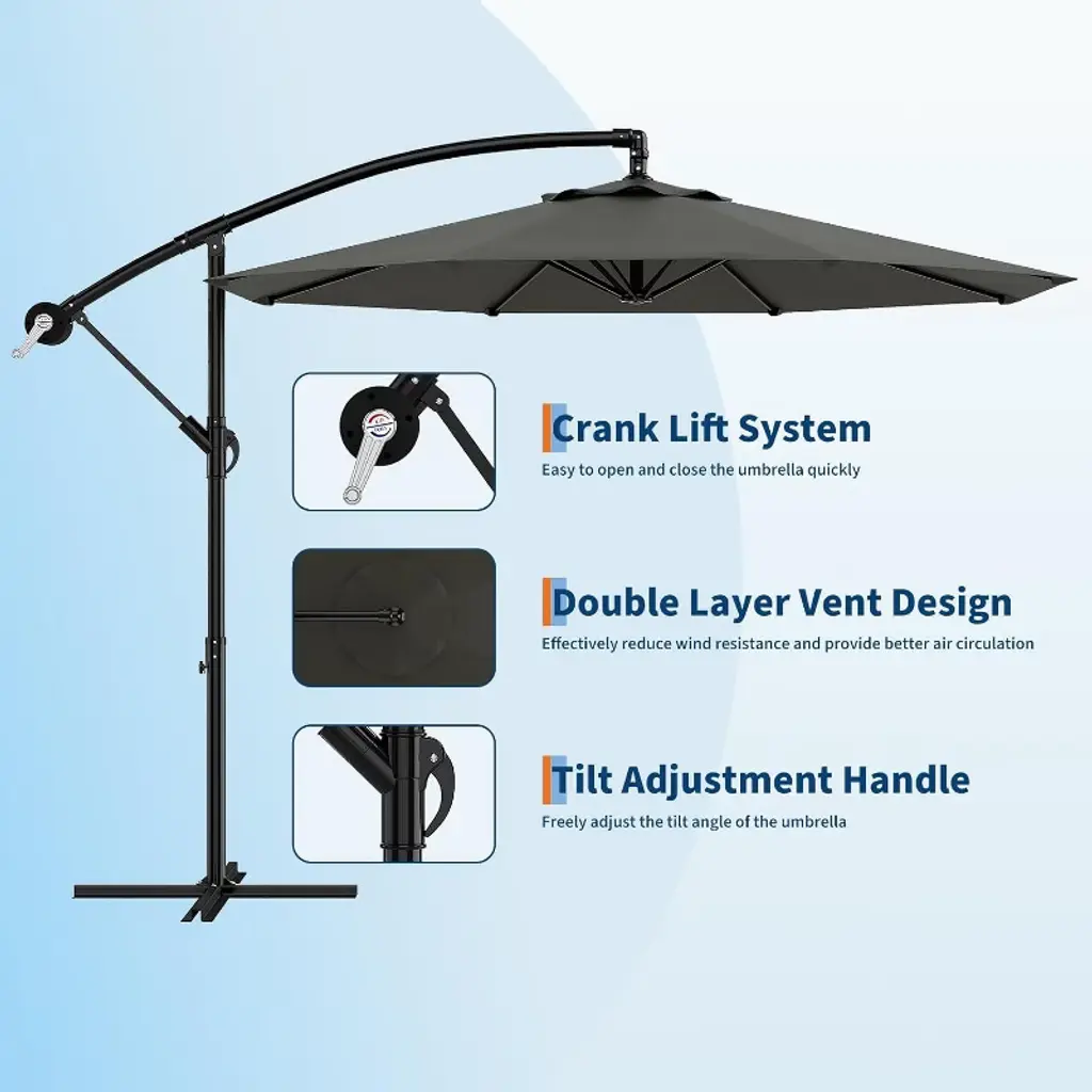 10ft Patio Umbrella,cantilever Umbrella With Easy Lift & Tilt Adjustment,8 Ribs Sun Umbrella For Backyard,gray