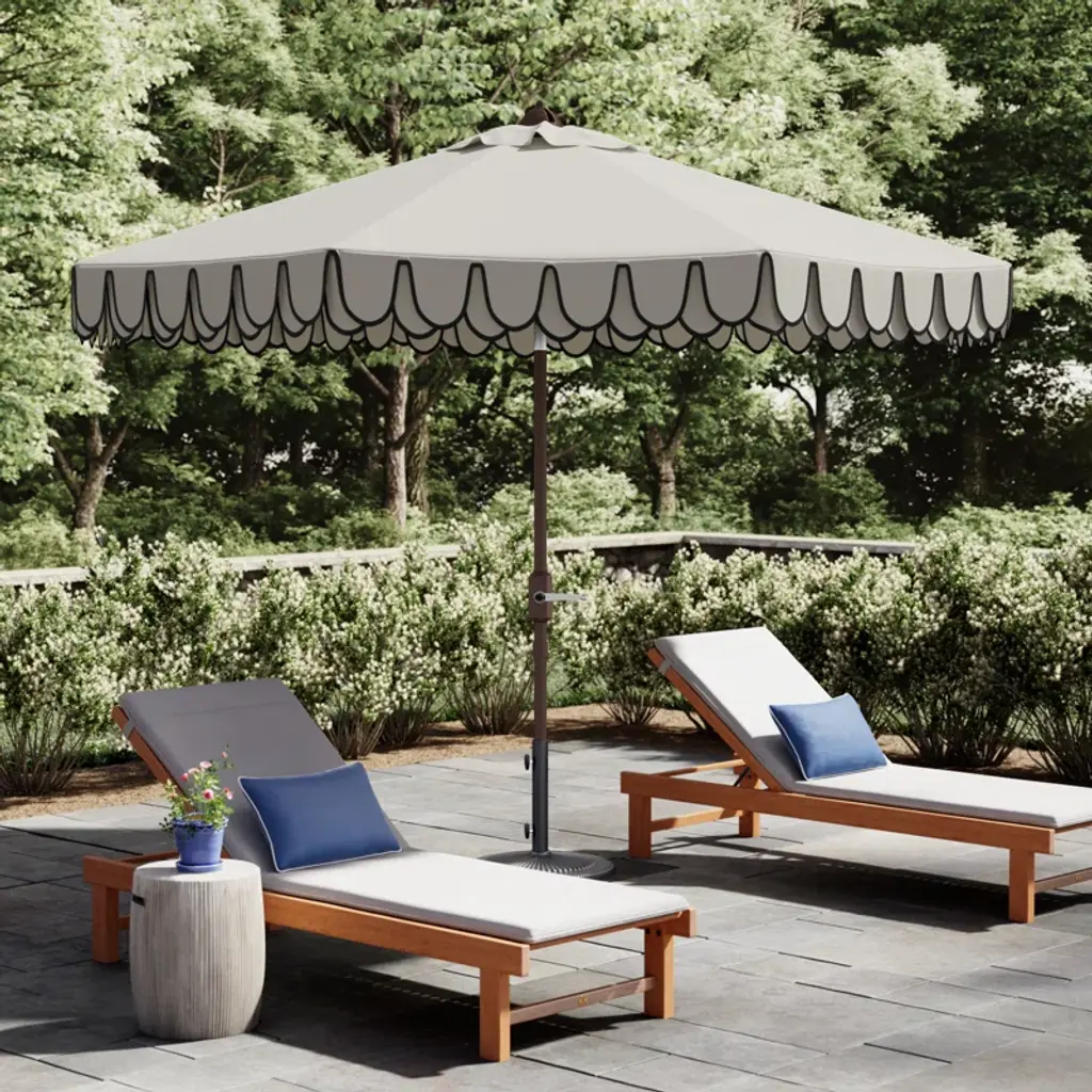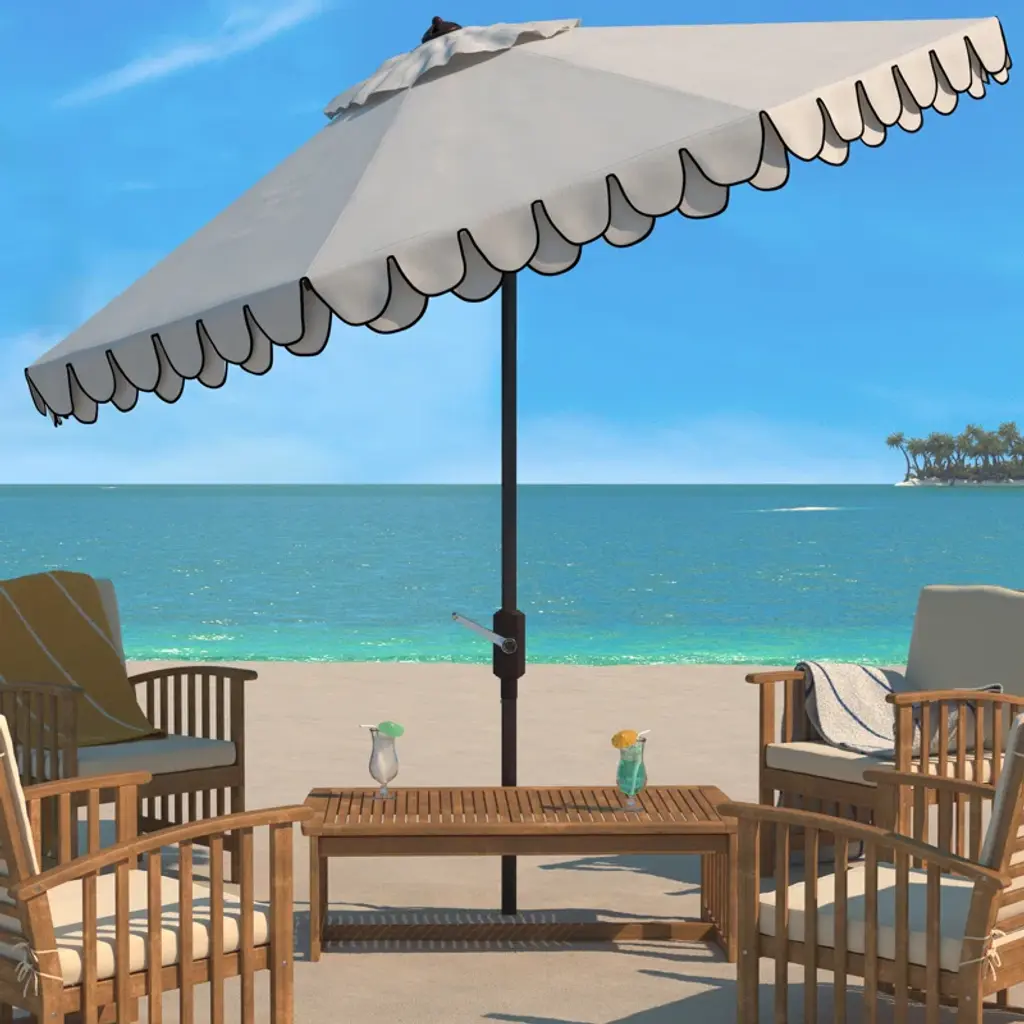 Offering a second home to jet setters and cinema stars, a legendary beachside resort at Cannes inspired this elegant round umbrella. With a petal valance, it recalls the inimitable red carpet glamour of the Cote d’Azur.