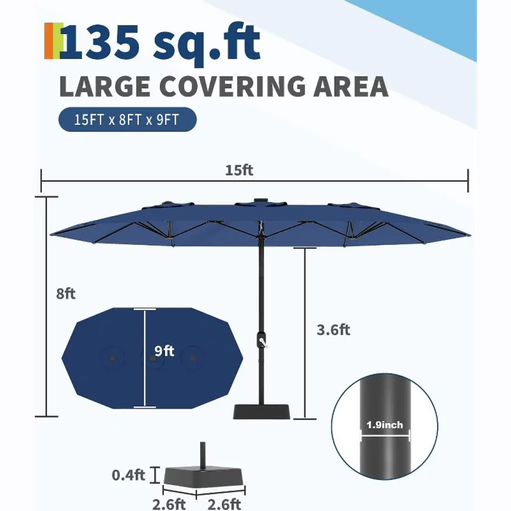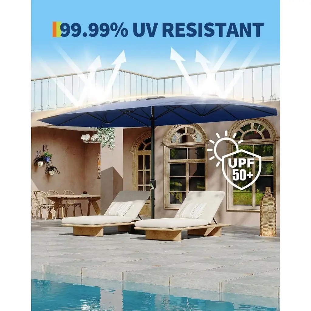 The Ultimate Space-Saving Shade Solution for Your Outdoor Oasis Picture this: Your backyard barbecue is in full swing, with guests spread across your patio furniture. While standard umbrellas leave people scrambling for shade, your 13-foot double-sided canopy comfortably covers both the dining area and lounge chairs simultaneously - no more hot spots or uneven coverage.