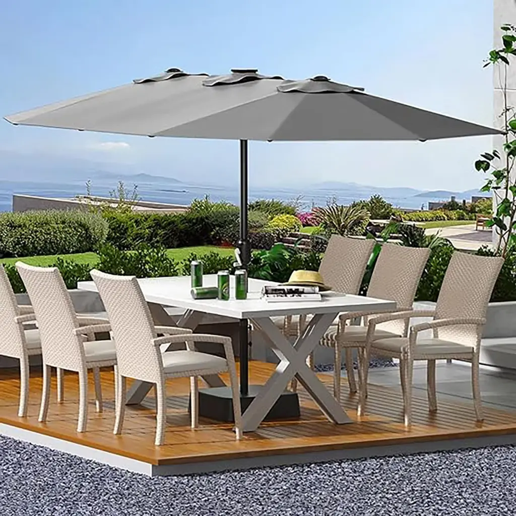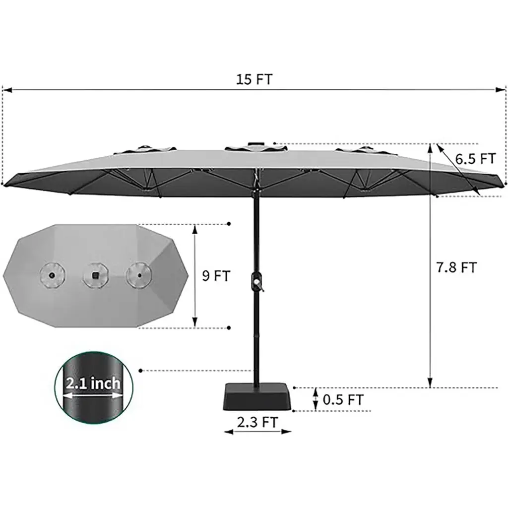 15ft Large Patio Double-sided Rectangle Market Umbrella With Base For Poolside Lawn Backyard, Gray