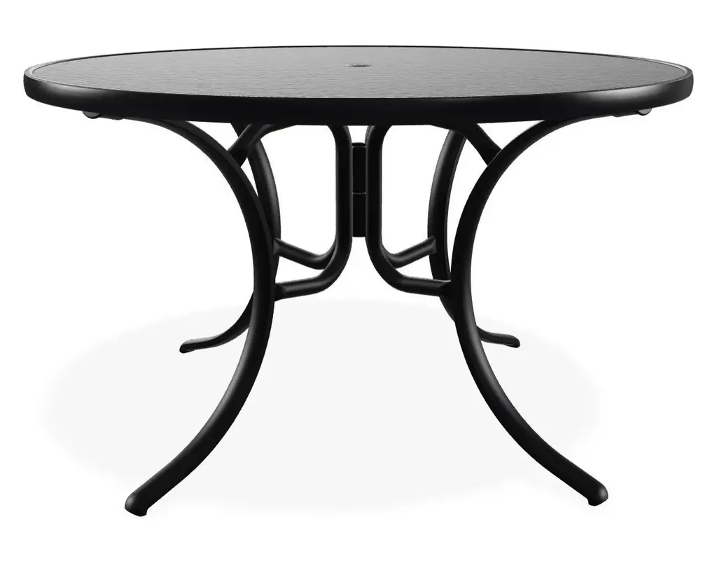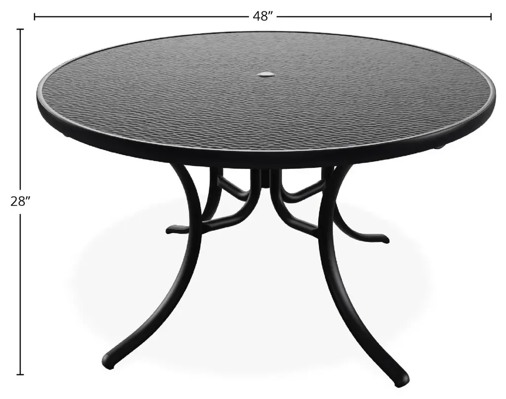 48" Round Hammered Outdoor Dining Table With Umbrella Hole, Black