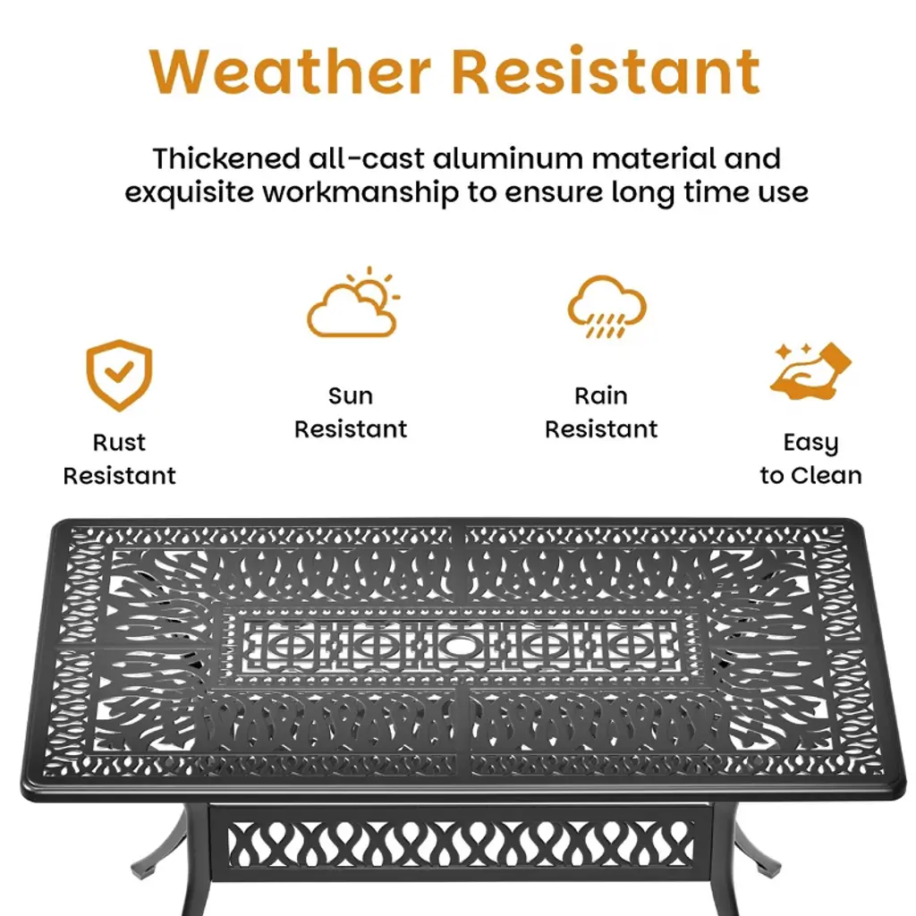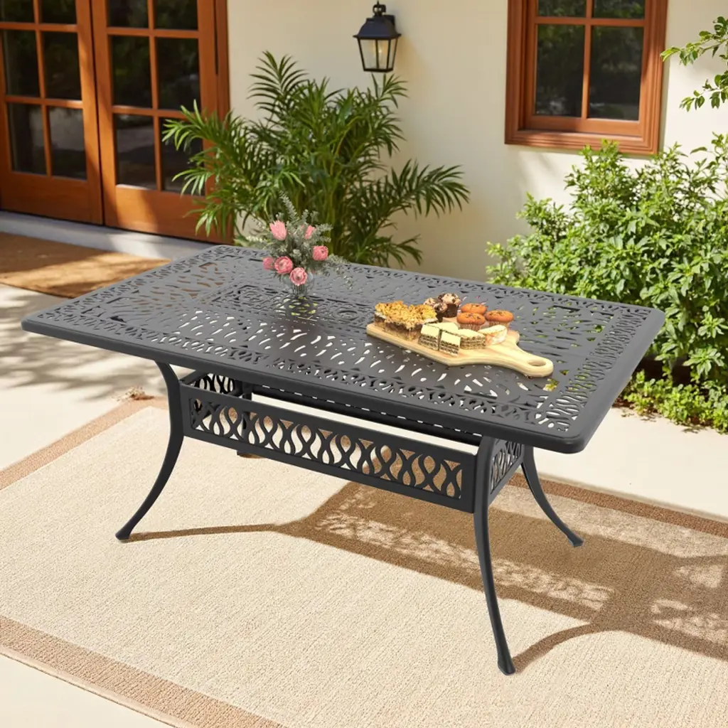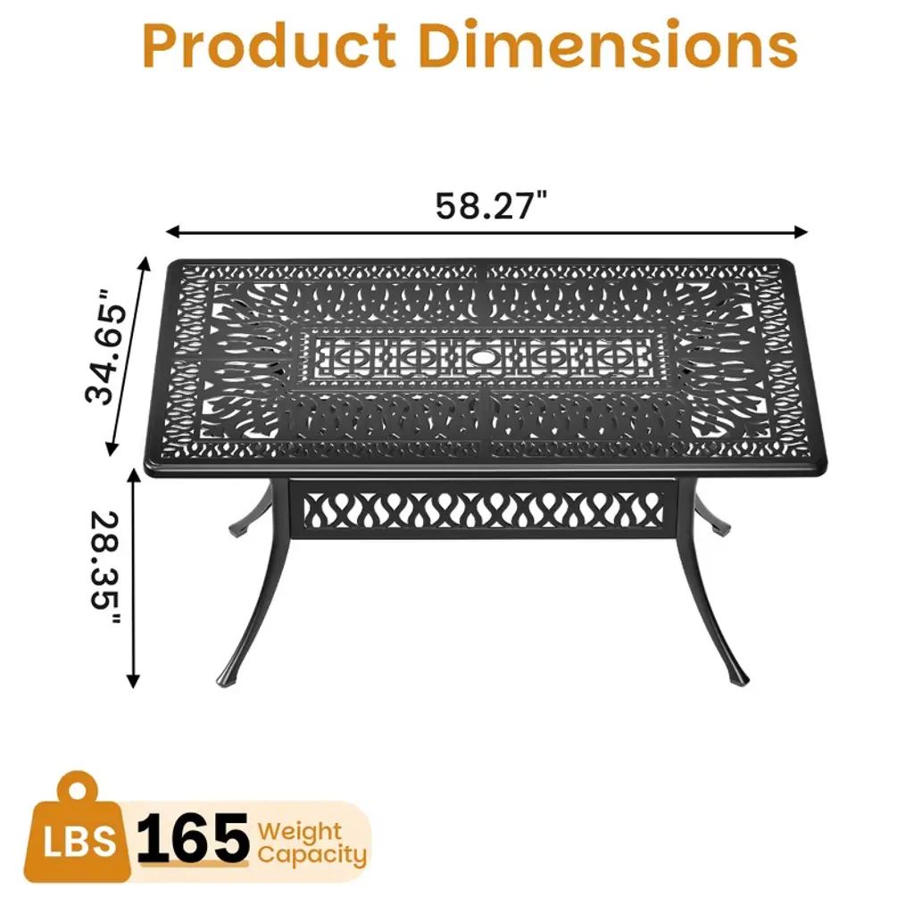 58.27" L X 34.65" W Rectangular Cast Aluminum Patio Table With 1.88" Umbrella Hole