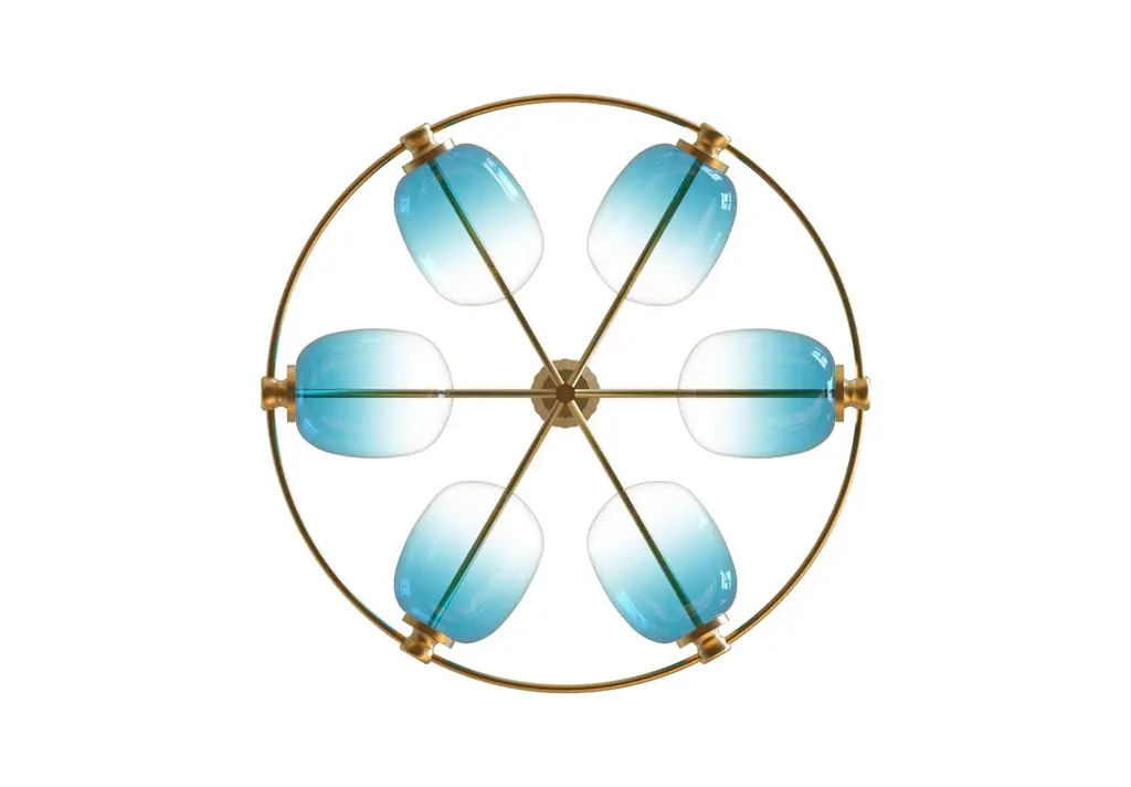 6 Module Blue Ombre Umbrella Candy Chandelier With Hand-Blown Glass And Brass