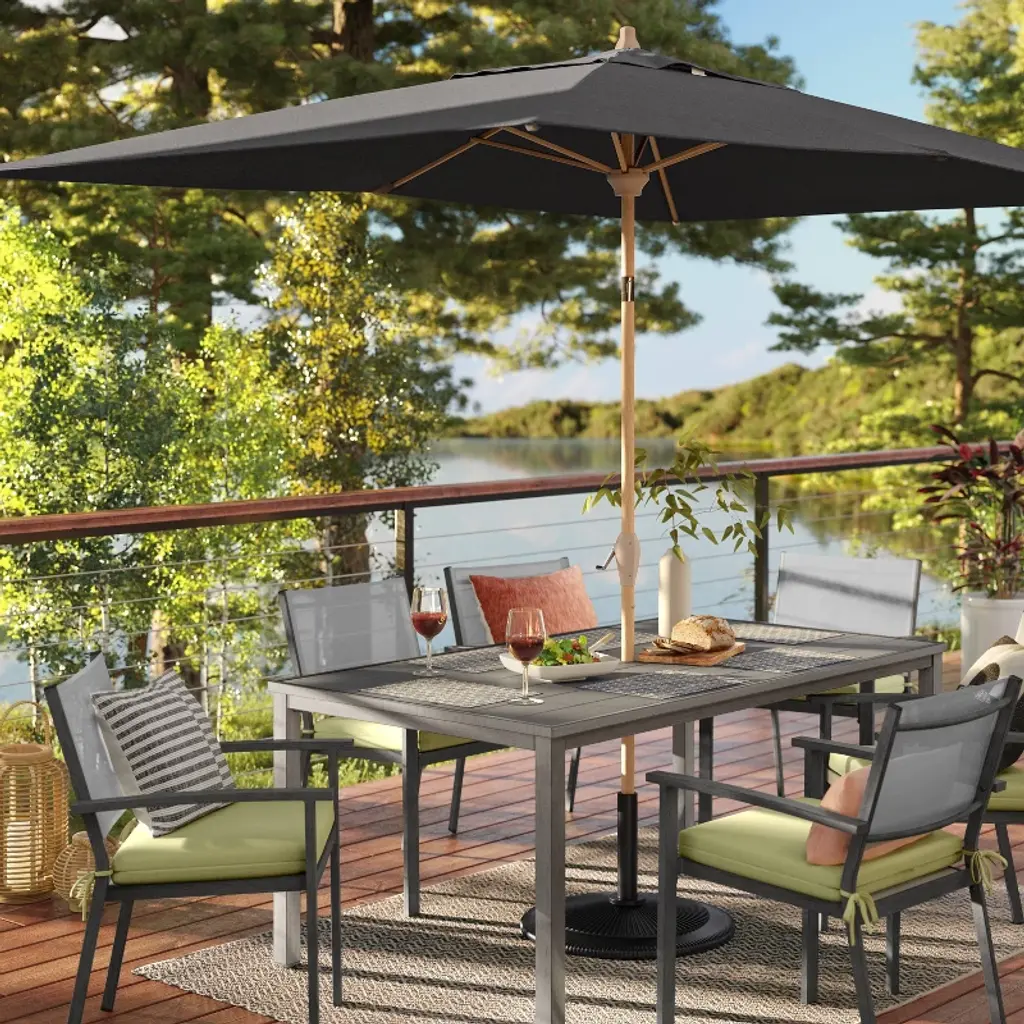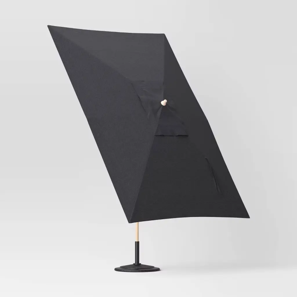 6'x10' Rectangular Outdoor Patio Market Umbrella Black With Faux Wood Pole - Threshold™