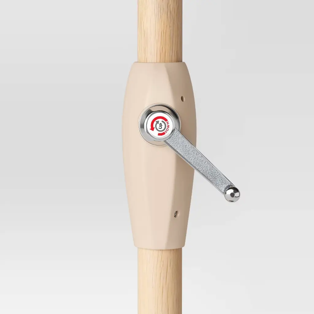 Spend more time in the sunshine enjoying the shade provided under this 10-Foot by 6-Foot Rectangular Market Patio Umbrella with Faux Wood Pole from Threshold™. Made with fade-resistant woven fabric in a solid hue, this umbrella's canopy is supported by a pole that's compatible with centered pole umbrella bases (sold separately). Use the crank lift and push-button tilt to easily adjust the umbrella to keep you and your guests cool and comfortable as the sun moves across the sky.Threshold™: Quality & Design / Casual classics for house and home.