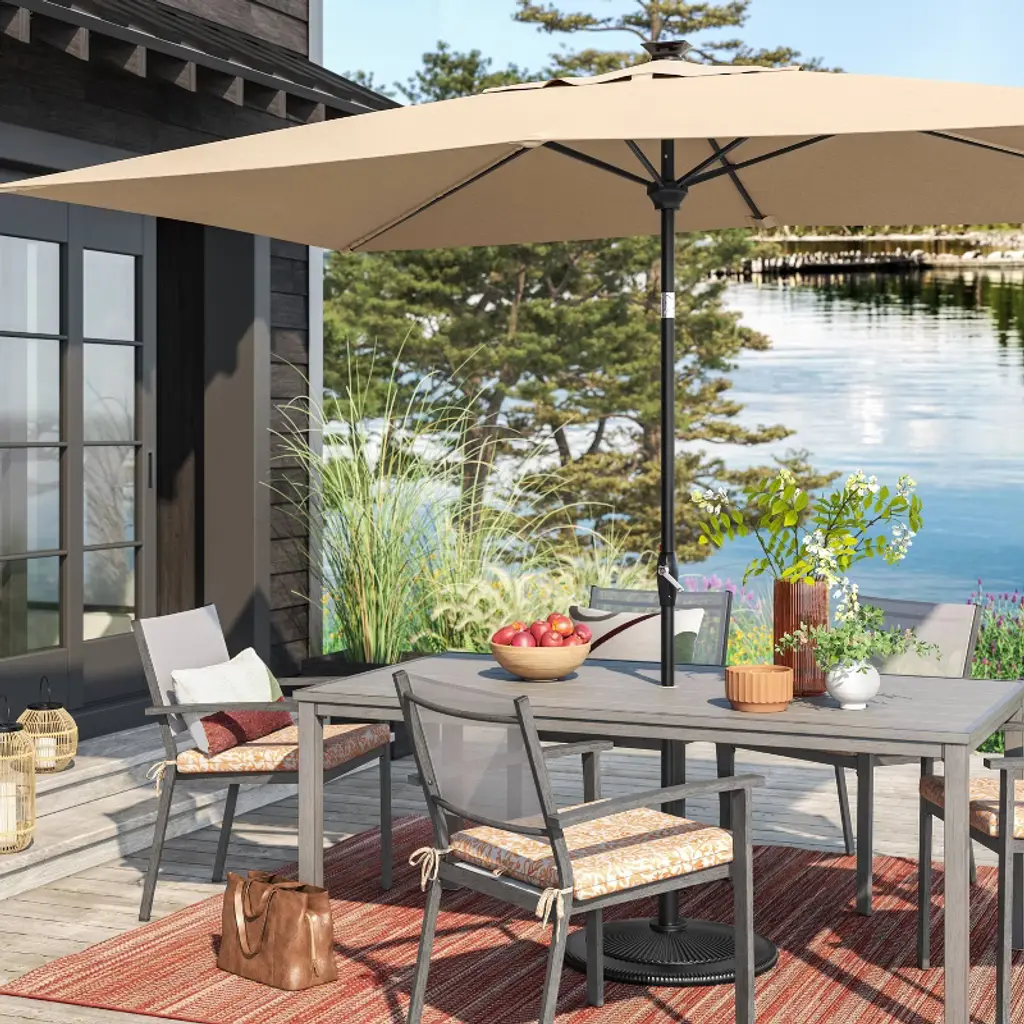 6'x10' Rectangular Solar Outdoor Patio Market Umbrella Tan With Black Pole - Threshold™