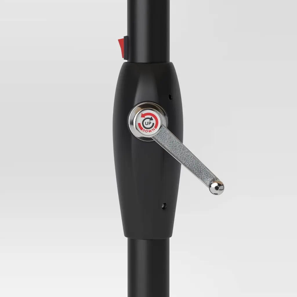 This 10-Foot x 6-Foot Rectangular Solar Market Patio Umbrella with Black Pole from Threshold™ is a great choice for your outdoor space. Made with solid-colored, fade-resistant fabric for lasting outdoor use, the umbrella has a black pole and aluminum and steel frame and is compatible with centered pole umbrella bases (sold separately). It's easy to set up with no tools needed, and with a crank lift and push-button tilt, you can effortlessly adjust the umbrella to maintain the perfect shady spot.Threshold™: Quality & Design / Casual classics for house and home.