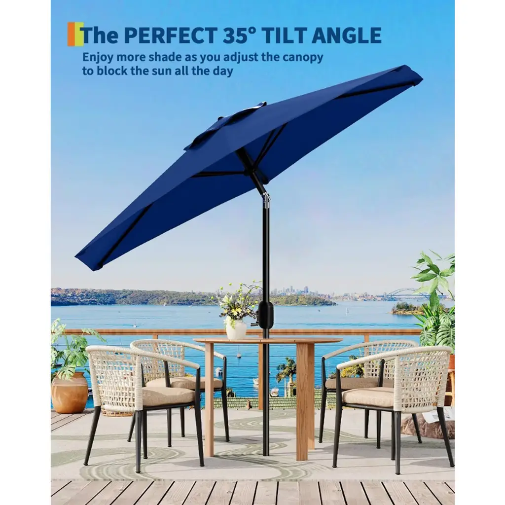 7.5ft Patio Umbrella Outdoor, Market Umbrella, Table Umbrella With Push Button Tilt And Crank, 6 Sturdy Ribs Uv Protection Waterproof (Navy Blue)