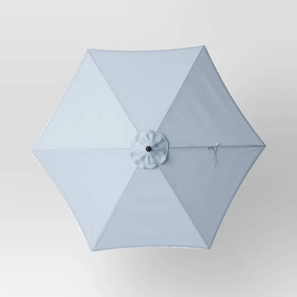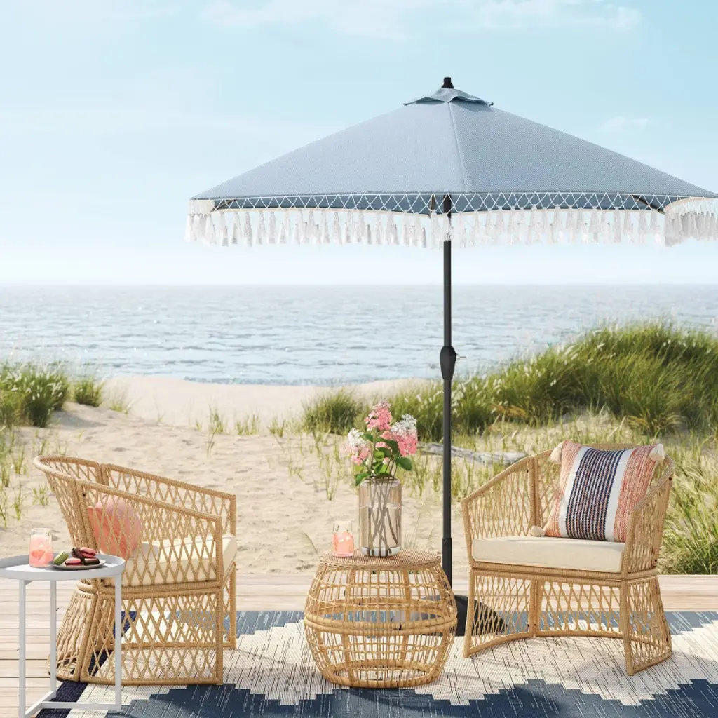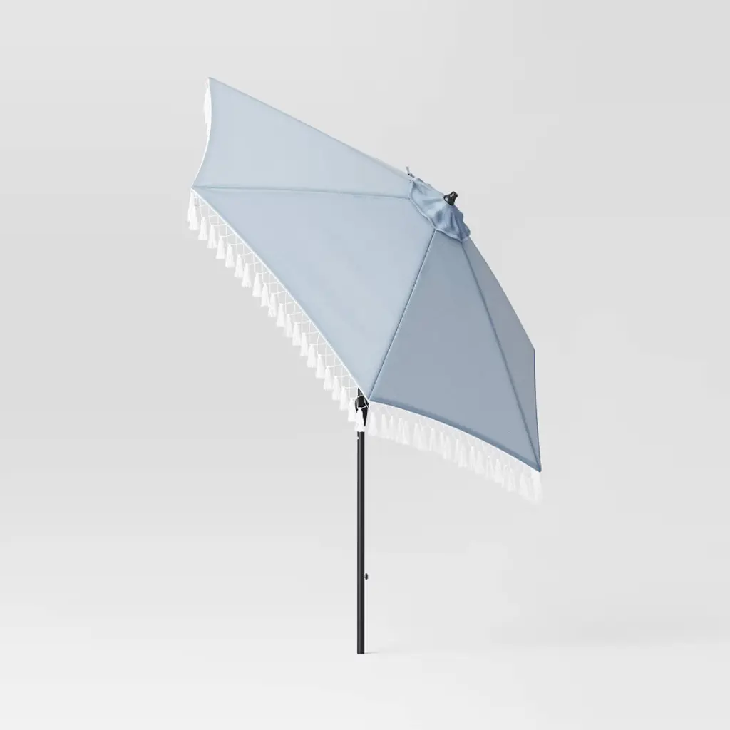 7.5'x7.5' Fringe Patio Market Umbrella Chambray - Black Pole - Threshold™: Fade-resistant, Push-up Lift, Steel Frame