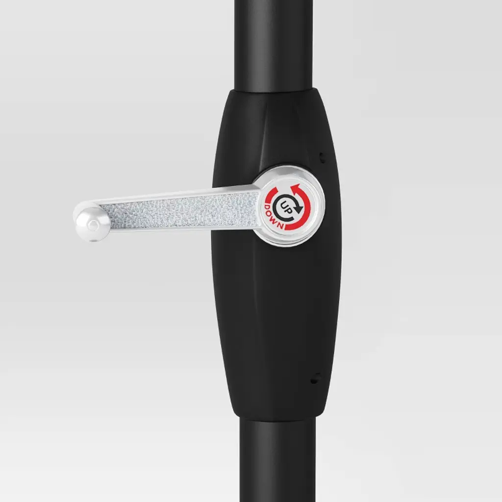 Enjoy outdoor drinks with friends or serve an after-swim snack to the kids with the help of this 7.5-Foot x 7.5-Foot Fringe Patio Market Umbrella from Threshold™. Made with fade-resistant fabric for lasting outdoor use, the umbrella has a black pole and steel frame and is compatible with centered pole umbrella bases (sold separately). It's easy to set up with no tools needed, and with a push-up lift and push-button tilt, you can effortlessly adjust the umbrella to maintain the perfect shady spot.Threshold™: Quality & Design / Casual classics for house and home.