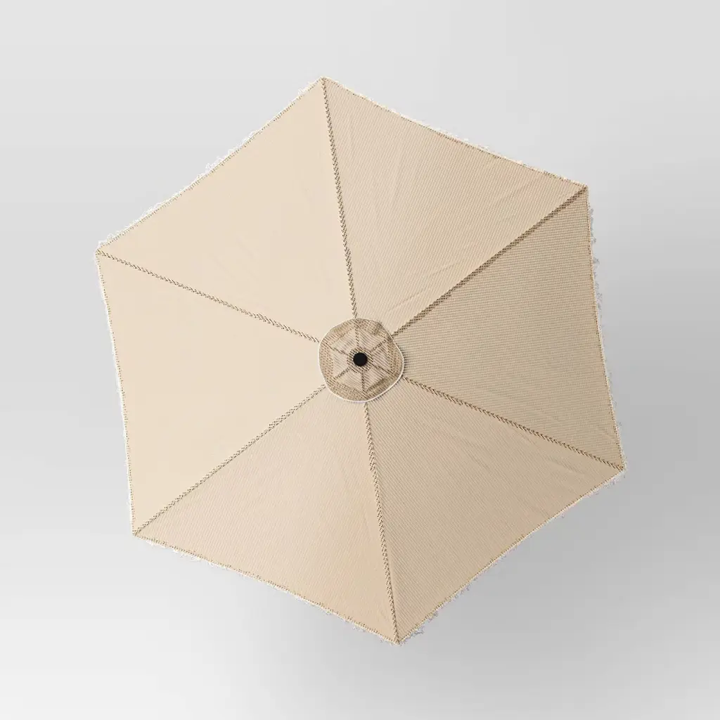 7.5'x7.7' Hexagon Macrame Outdoor Patio Market Umbrella Beige With Faux Wood Pole - Threshold™