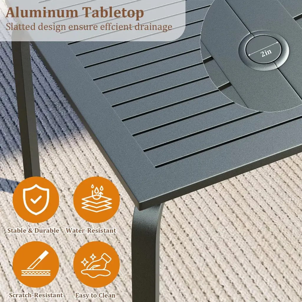 71" Aluminum Outdoor Dining Table With Umbrella Hole, Weatherproof & Rust-proof Design For Restaurants, Backyards, Poolside - Scratch-resistant Gray
