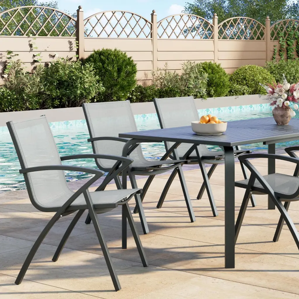 71" Outdoor Aluminum Patio Dining Table W/umbrella Hole, Aluminum Patio Table With Weatherproof & Rust-proof Design(4 Chairs)