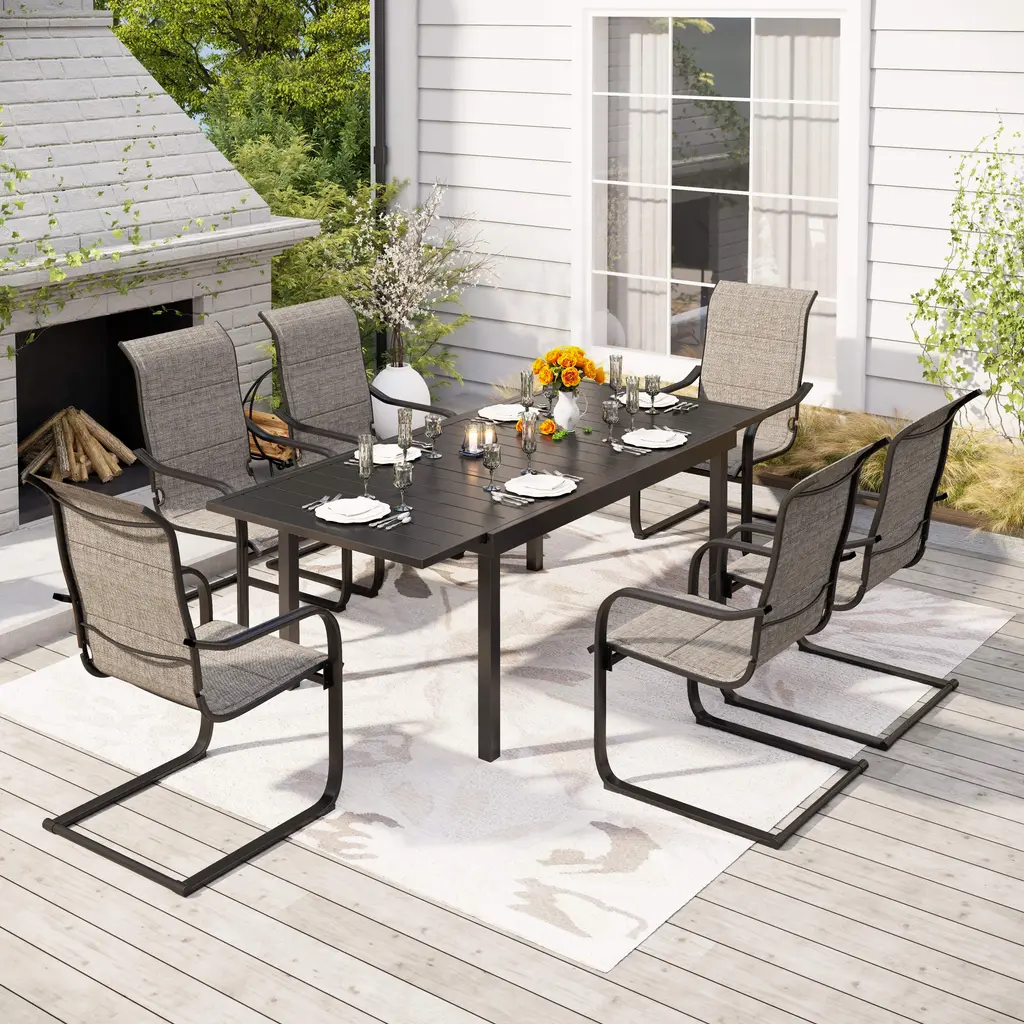 71" Outdoor Aluminum Patio Dining Table w/Umbrella Hole, Aluminum Patio Table with Weatherproof & Rust-Proof Design, Rectangular 6-8 Person Table for Deck Backyard