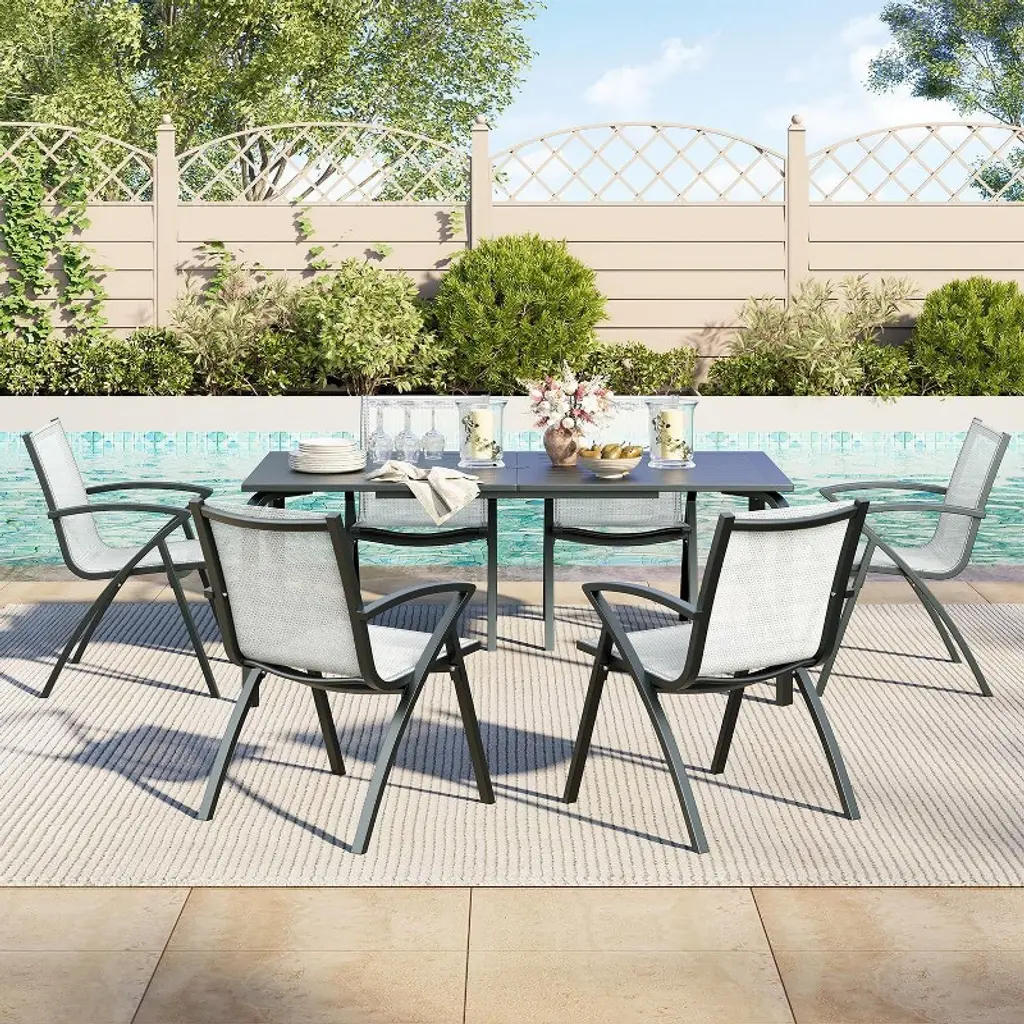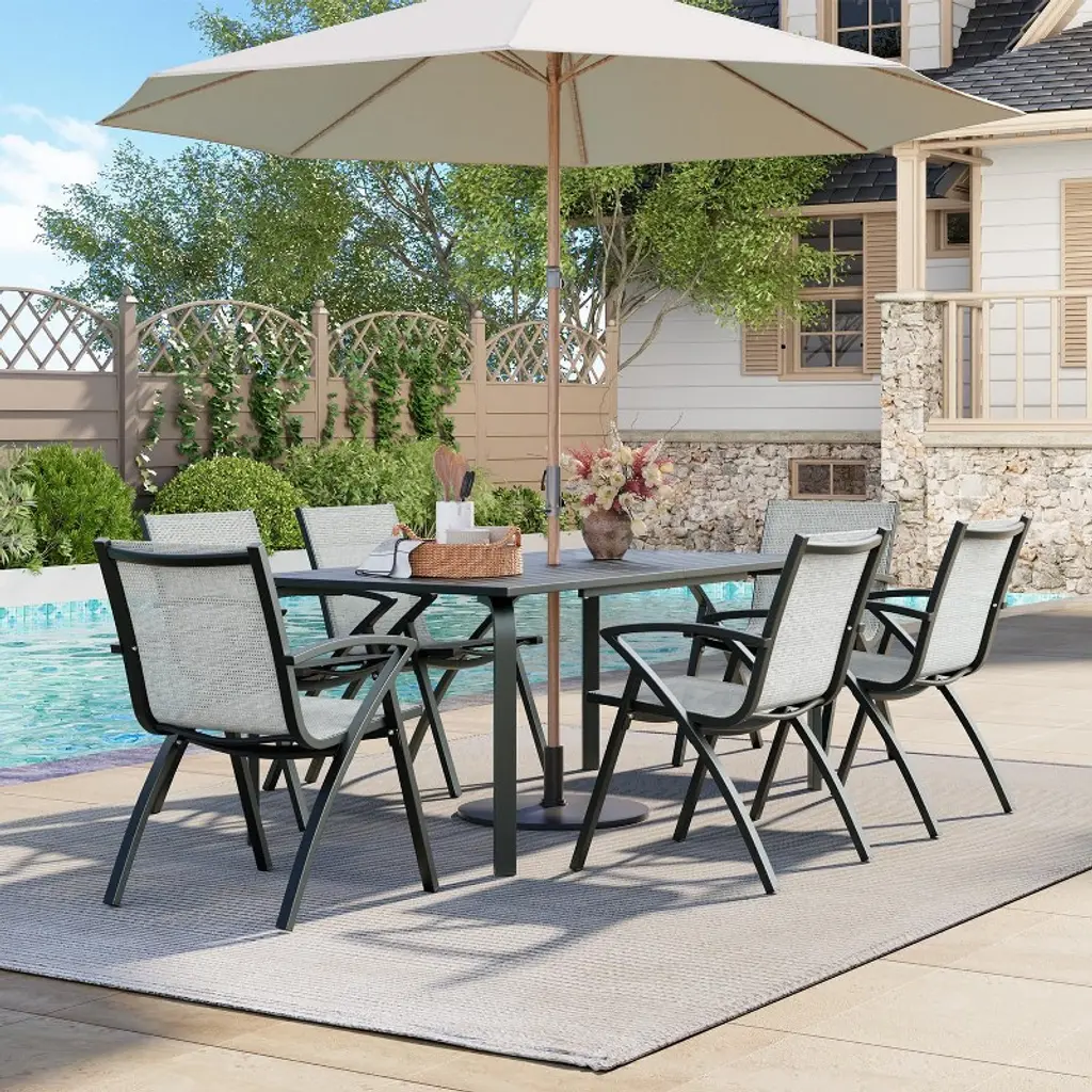 71" Outdoor Aluminum Patio Dining Table W/umbrella Hole, Aluminum Patio Table,grey