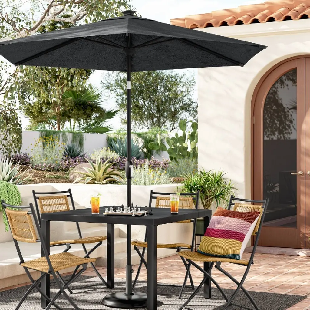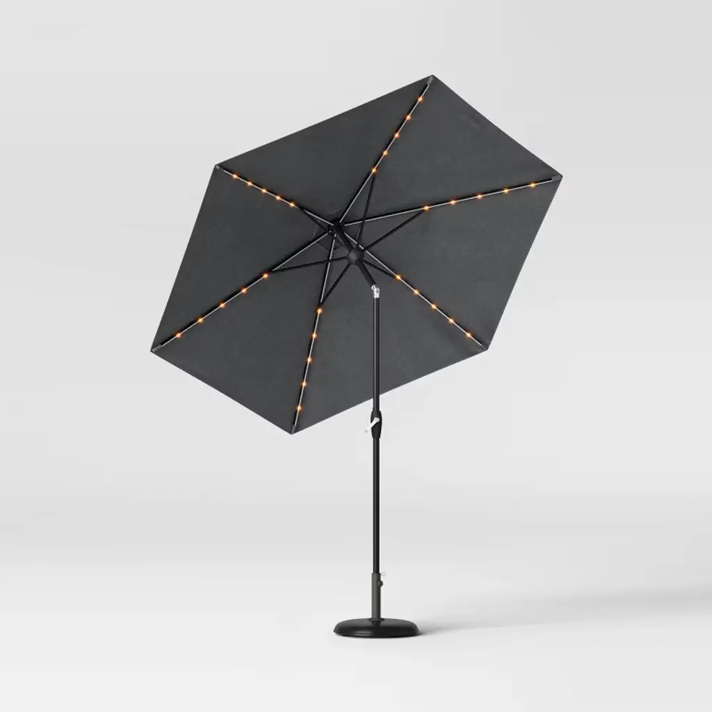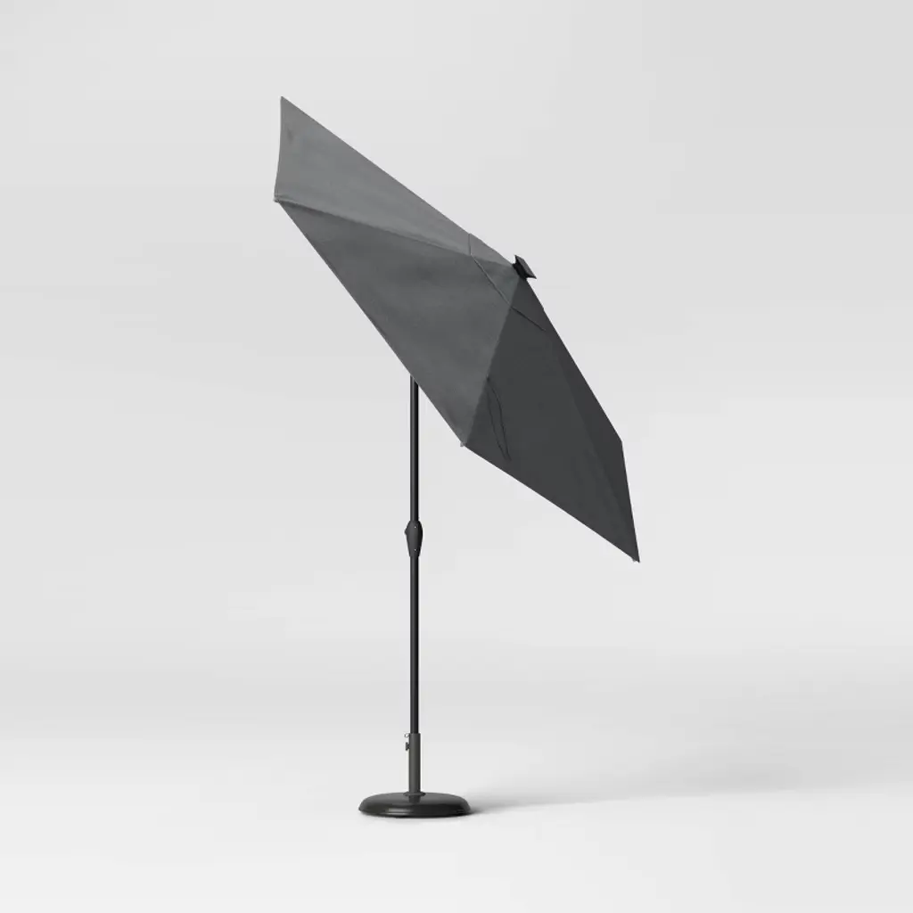 Enjoy the outdoors in shade with the 8-Feet Round Solid Solar Outdoor Patio Market Umbrella with Black Pole from Threshold™. This round umbrella comes with a black base for easy integration into your patio setting. Fade-resistant, this solar patio umbrella tilts to meet your needs. This metal-frame umbrella comes with a crank for easy up and down adjustment.Threshold™: Looks like home, feels like you.
