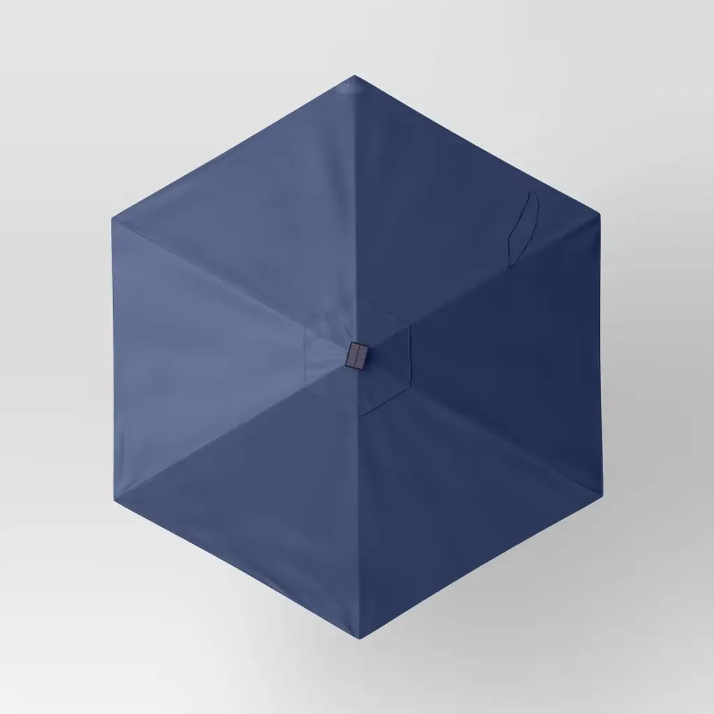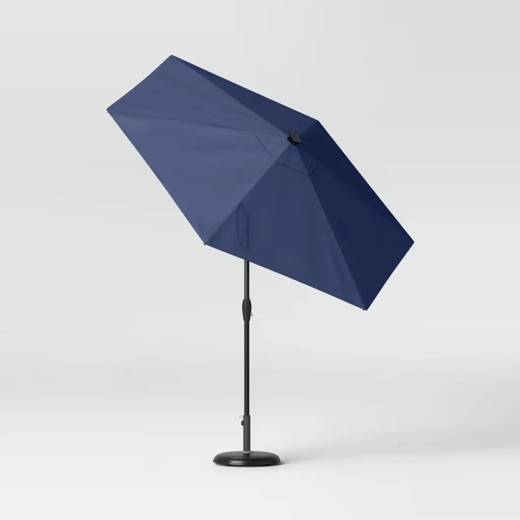 8' Round Solid Solar Outdoor Patio Market Umbrella Navy Blue With Black Pole - Threshold™
