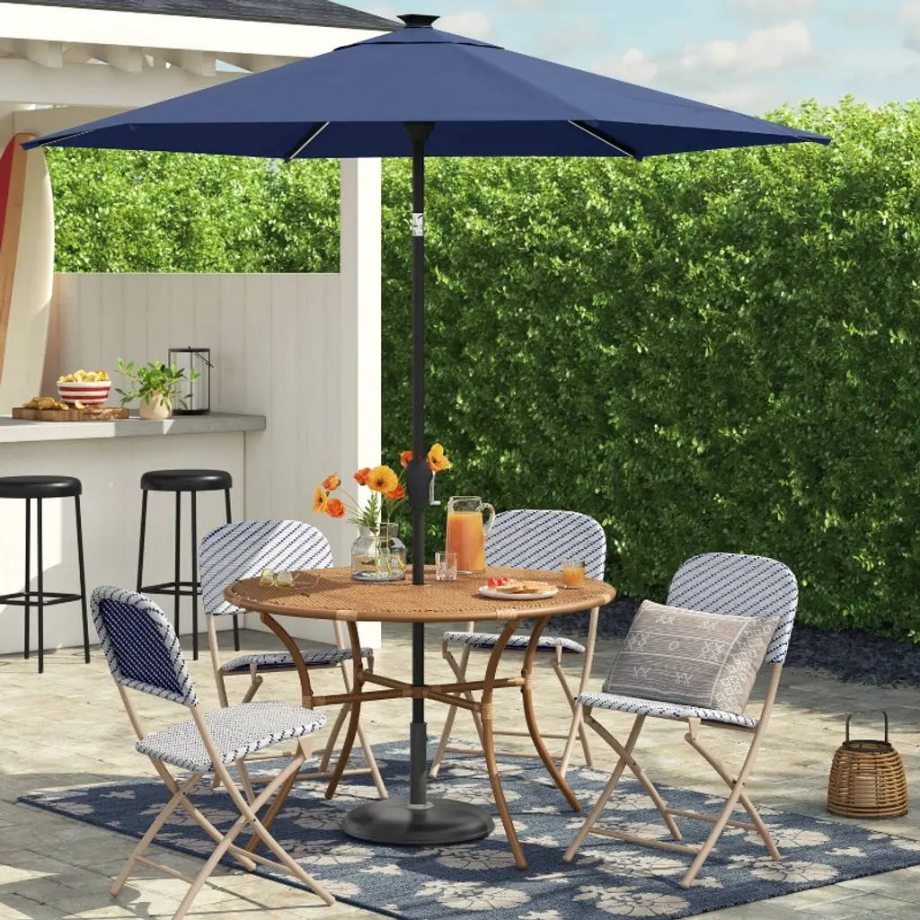 Enjoy the outdoors in shade with the 8-Feet Round Solid Solar Outdoor Patio Market Umbrella with Black Pole from Threshold™. This round umbrella comes with a black base for easy integration into your patio setting. Fade-resistant, this solar patio umbrella tilts to meet your needs. This metal-frame umbrella comes with a crank for easy up and down adjustment.Threshold™: Looks like home, feels like you.