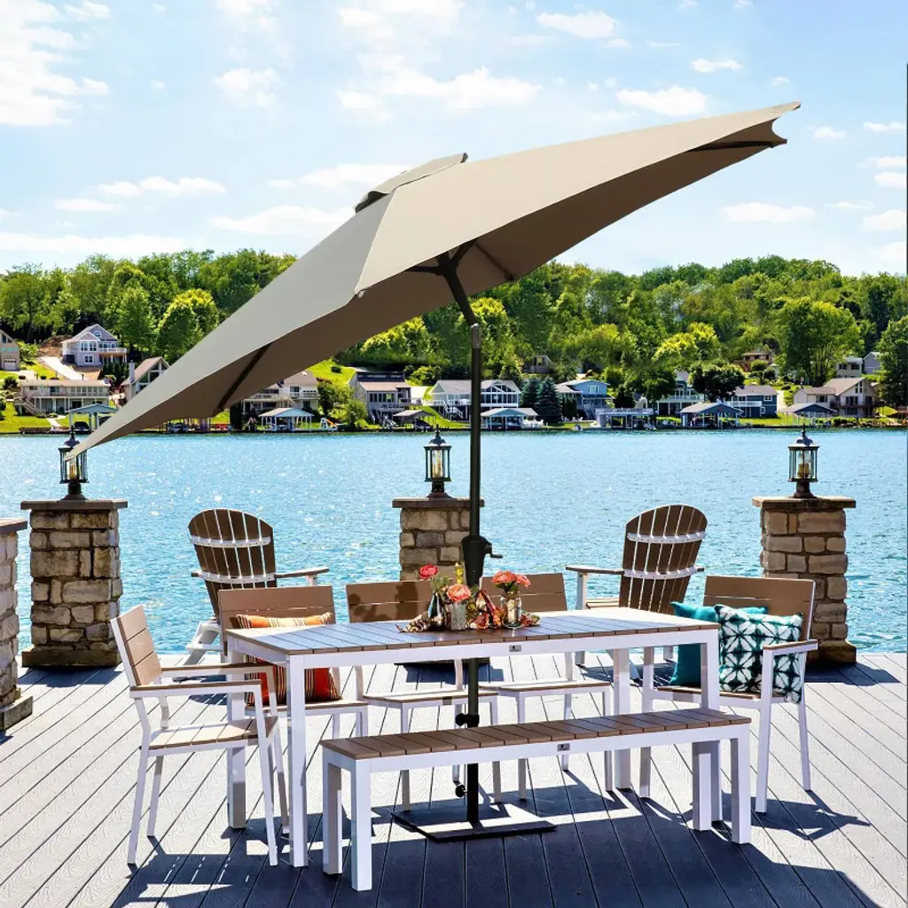 This 9 feet patio umbrella is a great choice for your outdoor activities.Made of polyester fabric, the patio umbrella provides high durability and large area to protect your skin from sunburn. Moreover, its lightweight and compact design and include carry bag make it easy for you to move and carry it. This patio umbrella is suitable for outdoor scenes such as patio, park, yard, swimming poolside, beach, etc.