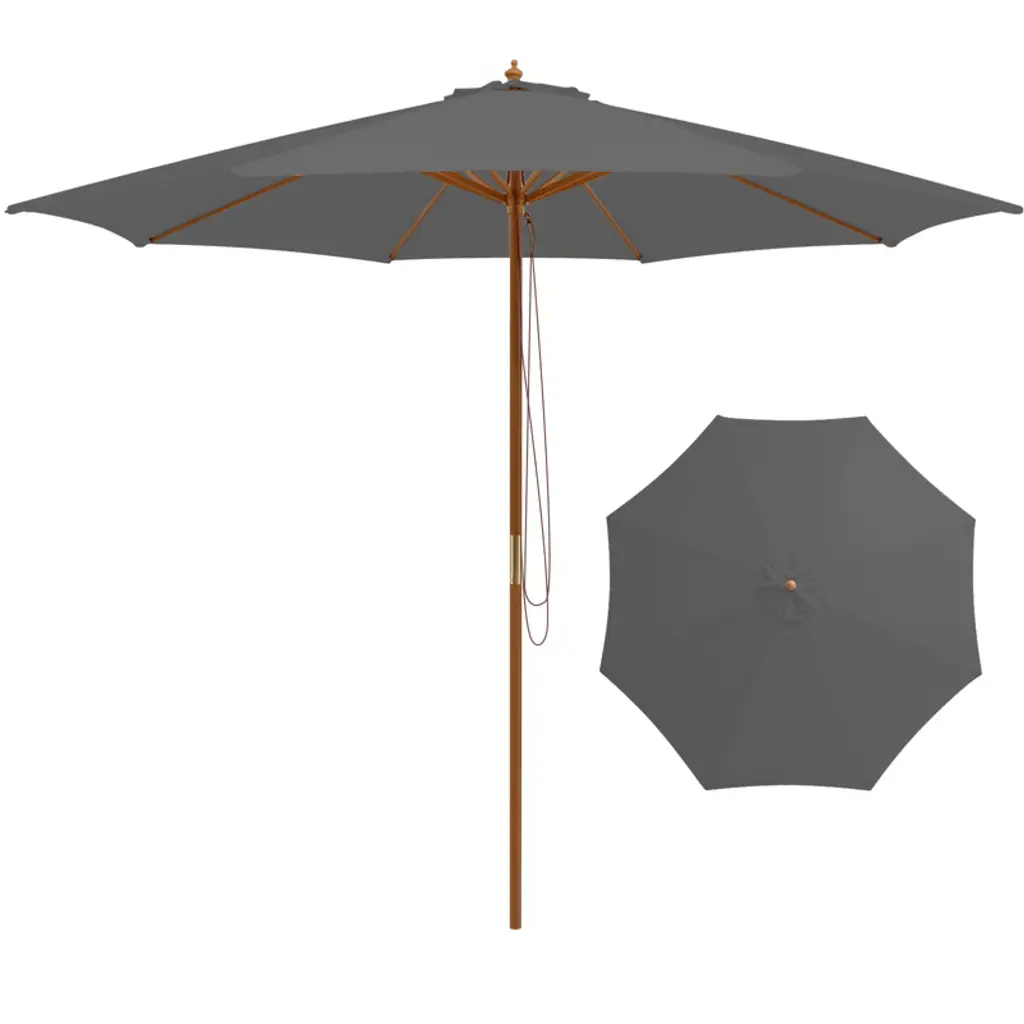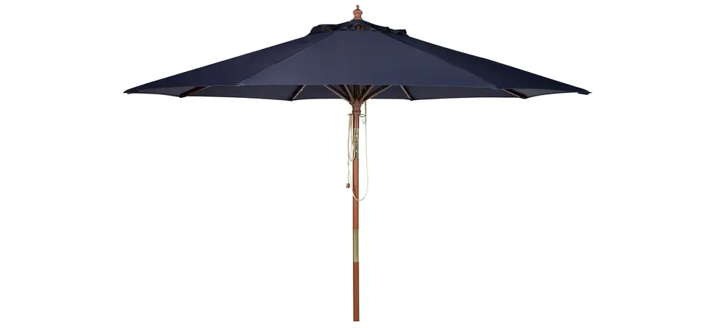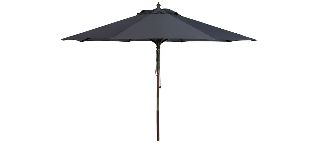 Serene and soothing, Arizona’s most revered spa retreat inspired the timeless style of this nine-foot wooden umbrella. Designed to blend seamlessly into any tasteful décor, it's neutral grey hue makes it a investment for a healthy outdoor lifestyle. Store outdoor furniture indoors or cover well when not in use. Remove wooden furniture from standing water. Dust regularly with small brush or vacuum. Spills should be taken care of immediately before they harden or stain with a slightly dampened sponge. Do not use bleach solutions. Some assembly required.