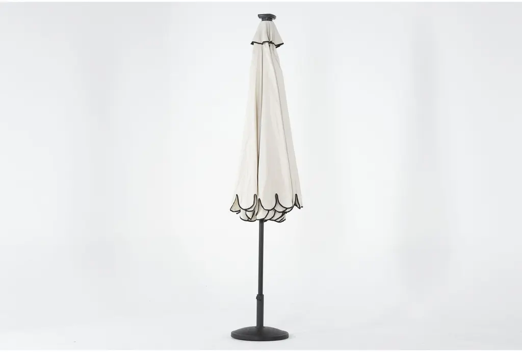 9' Ivory Scallop Edge Outdoor Market Umbrella With Led Light Strips & Base