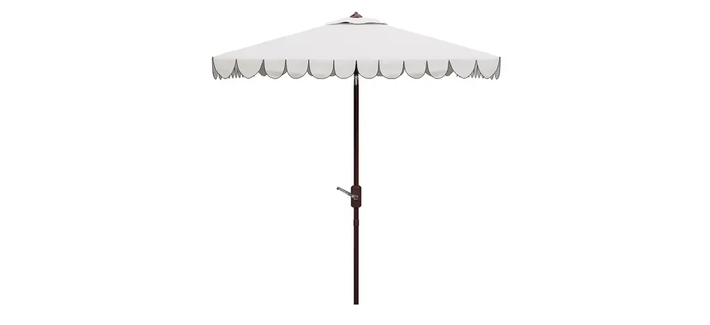 Things are about to get shady with our Scallop Edge Outdoor Market umbrella. With a design that seamlessly blocks the sun, you’ll be able to seek protection and relaxation under here. A sturdy aluminum frame and base support the 100% polyester canopy, which comes with LED light strips that illuminate the ribs. These lights are both battery and solar-powered and provide a romantic glow in the evening.