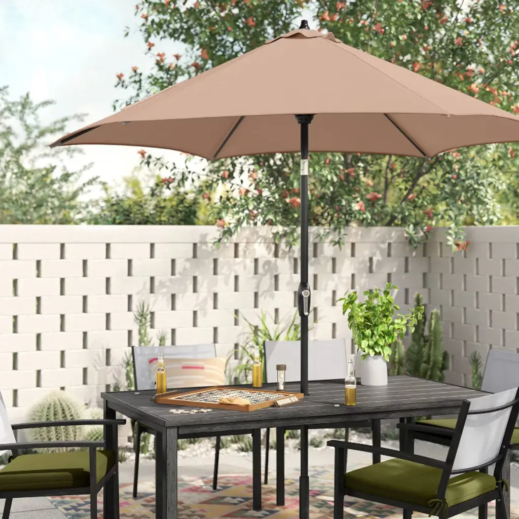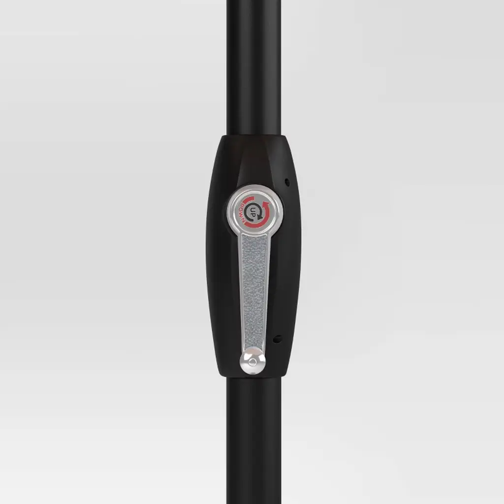 This 9-Foot x 9-Foot Patio Market Umbrella from Room Essentials™ will add style and cozy shade to your patio setup. Made with fade-resistant fabric in a solid hue, it makes an easy pairing with any patio decor scheme. It's supported by a steel frame and is compatible with centered pole umbrella bases (sold separately), and the crank lift and push-button tilt let you easily adjust the umbrella to keep everybody in the shade.Room Essentials™: Everyday Value