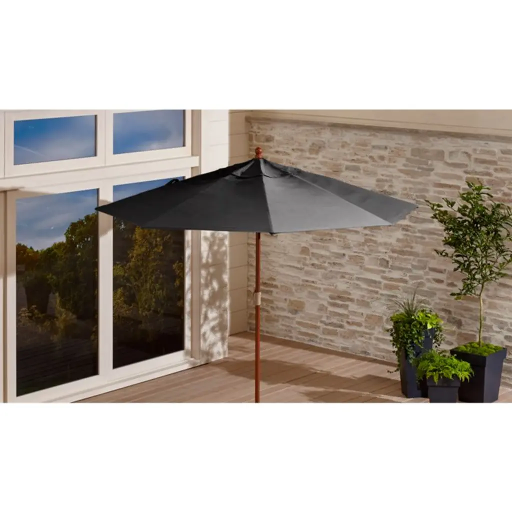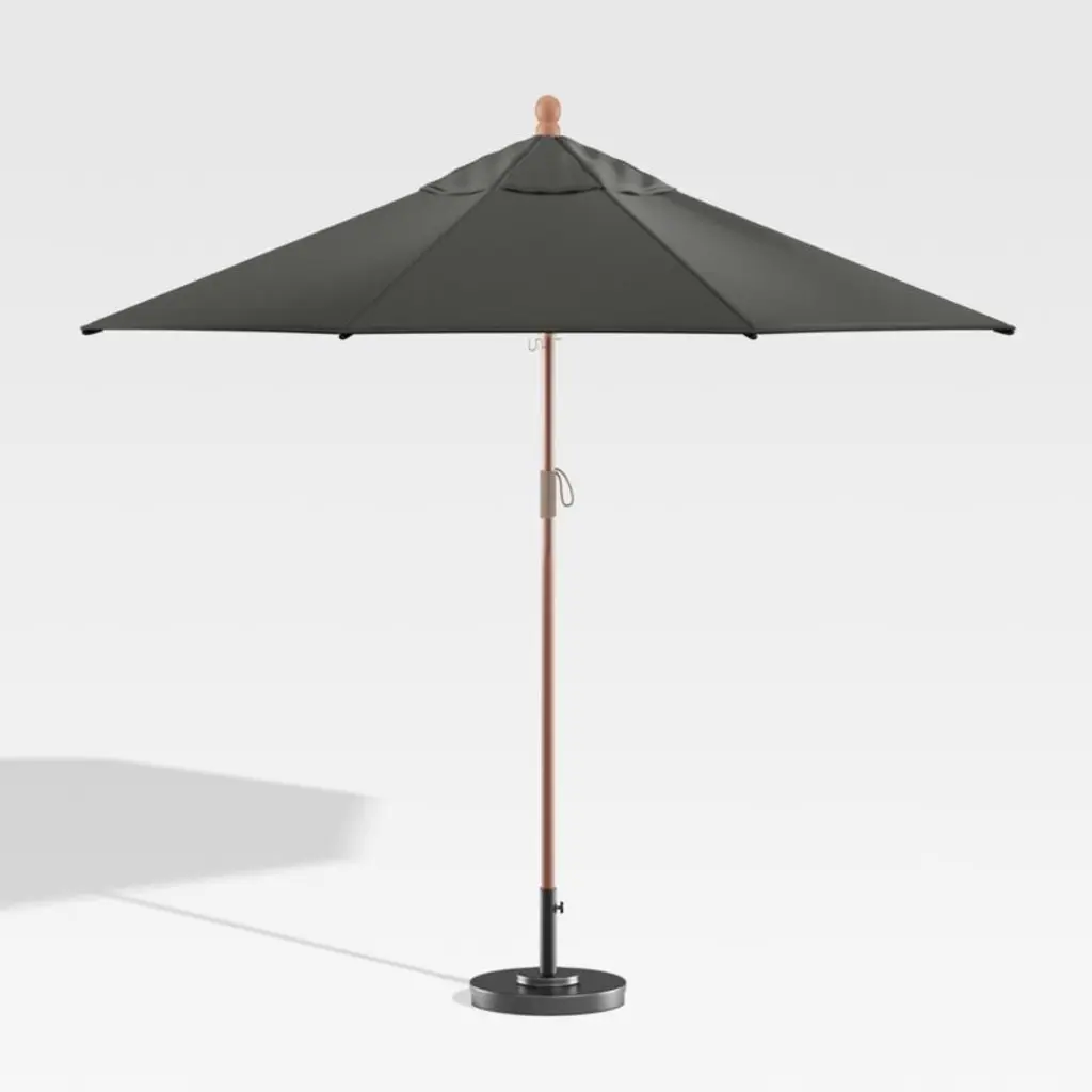 9' Round Sunbrella ® Stone Outdoor Patio Umbrella With Eucalyptus Frame