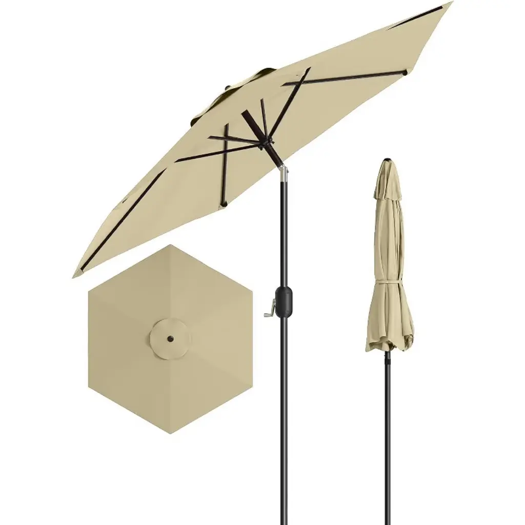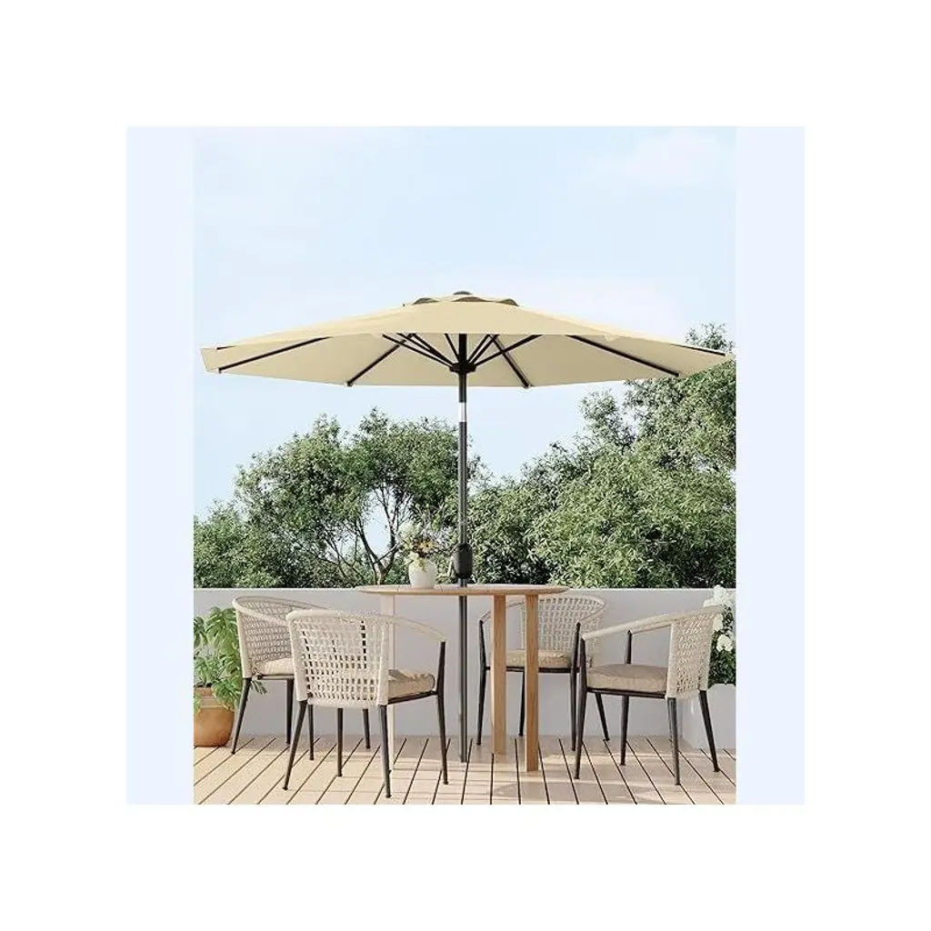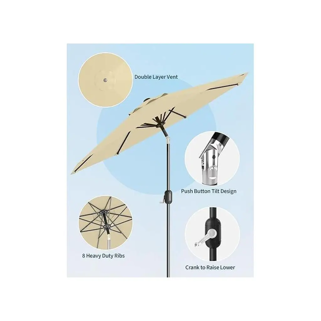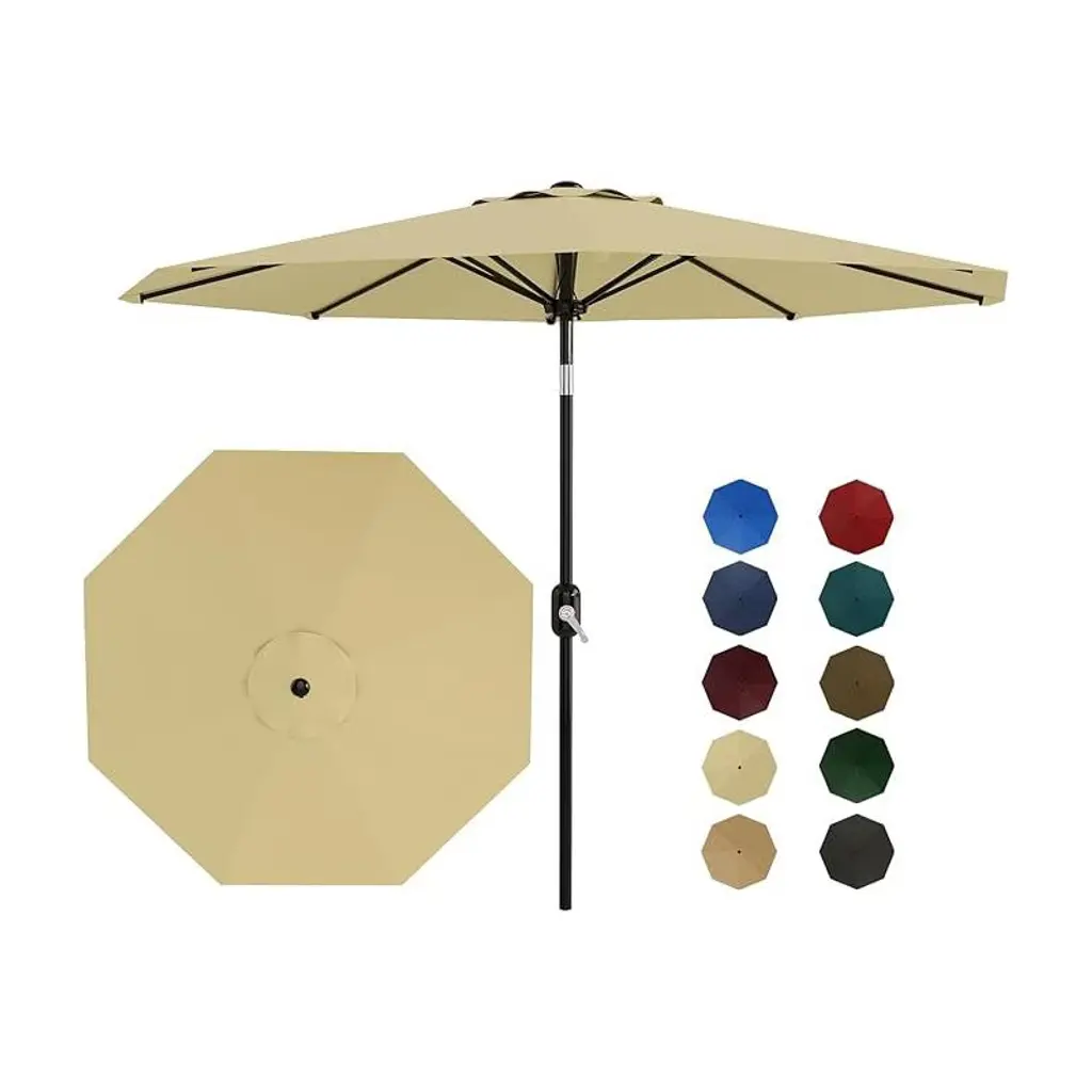 Transform Your Backyard Into a Cool Oasis That Outsmarts the Sun That moment when you finally sit down with your iced tea, only to have the sun you across the patio - sound familiar? This 9ft heavy-duty umbrella solves the daily battle against heat and glare with intelligent design. Imagine: A single smooth crank raises a canopy so effective it creates an instant "cool zone," dropping temperatures noticeably the second you step underneath. The secret? Military-grade steel ribs holding triple-layer fabric that doesn't just block sunbeams - it practically filters them. What makes this different from flimsy department store umbrellas? Eight steel bones in a frame stiff enough to shrug off coastal winds, yet nimble enough to tilt with a thumb as the sun moves. While cheaper umbrellas invert at the first breeze, this one's vented top redirects wind like a pro, staying upright when others would be airborne. Morning coffee stays shaded until lunchtime without needing to drag furniture around - just a quick click adjusts the angle while you sip.