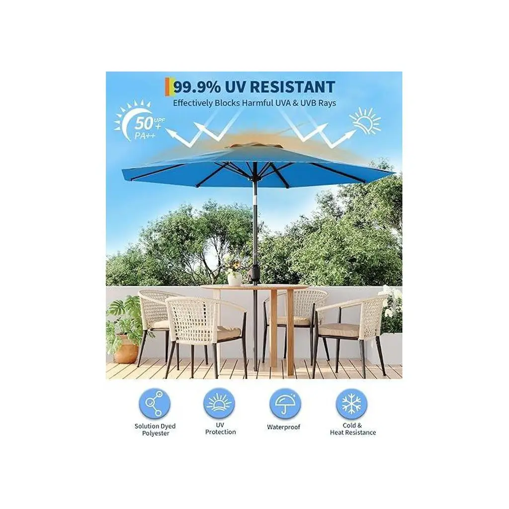 Transform Your Backyard Into a Cool Oasis That Outsmarts the Sun That moment when you finally sit down with your iced tea, only to have the sun you across the patio - sound familiar? This 9ft heavy-duty umbrella solves the daily battle against heat and glare with intelligent design. Imagine: A single smooth crank raises a canopy so effective it creates an instant "cool zone," dropping temperatures noticeably the second you step underneath. The secret? Military-grade steel ribs holding triple-layer fabric that doesn't just block sunbeams - it practically filters them. What makes this different from flimsy department store umbrellas? Eight steel bones in a frame stiff enough to shrug off coastal winds, yet nimble enough to tilt with a thumb as the sun moves. While cheaper umbrellas invert at the first breeze, this one's vented top redirects wind like a pro, staying upright when others would be airborne. Morning coffee stays shaded until lunchtime without needing to drag furniture around - just a quick click adjusts the angle while you sip.