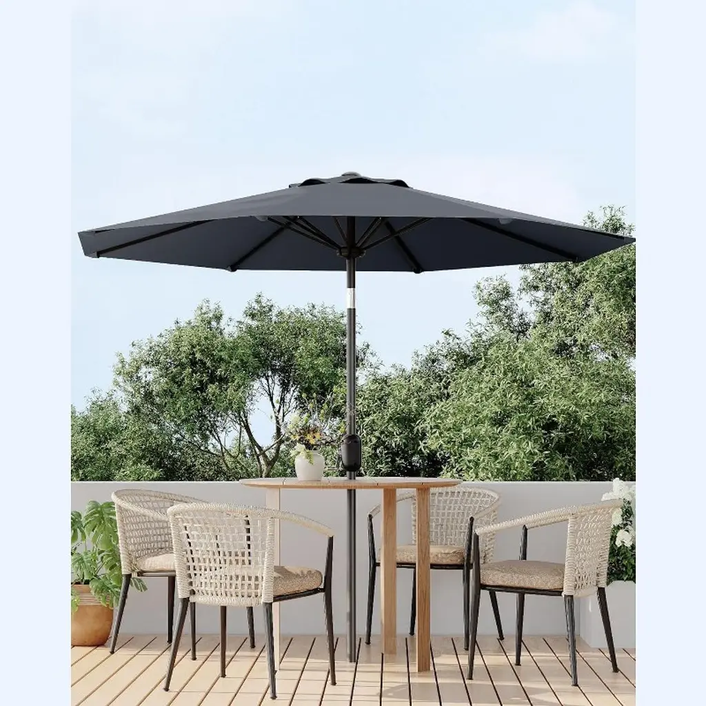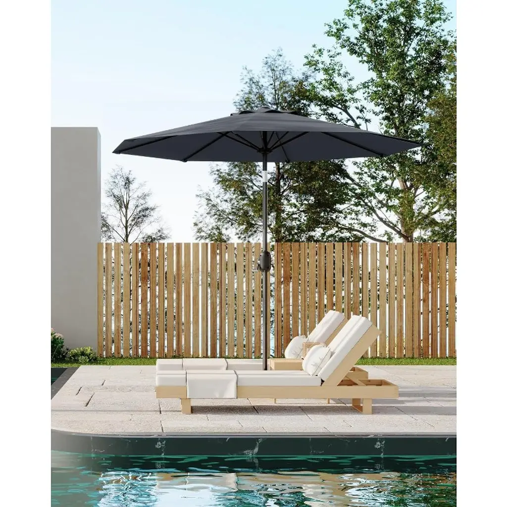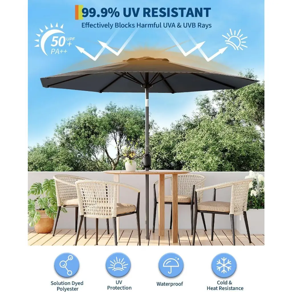 9Ft Outdoor Patio Umbrella, Market/table Umbrella With Push Button Tilt And Crank, Uv Protection Waterproof For Garden, Pool (Gray)