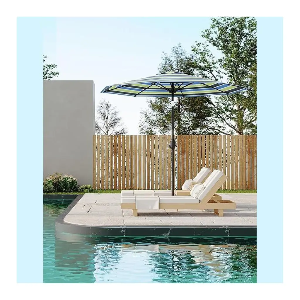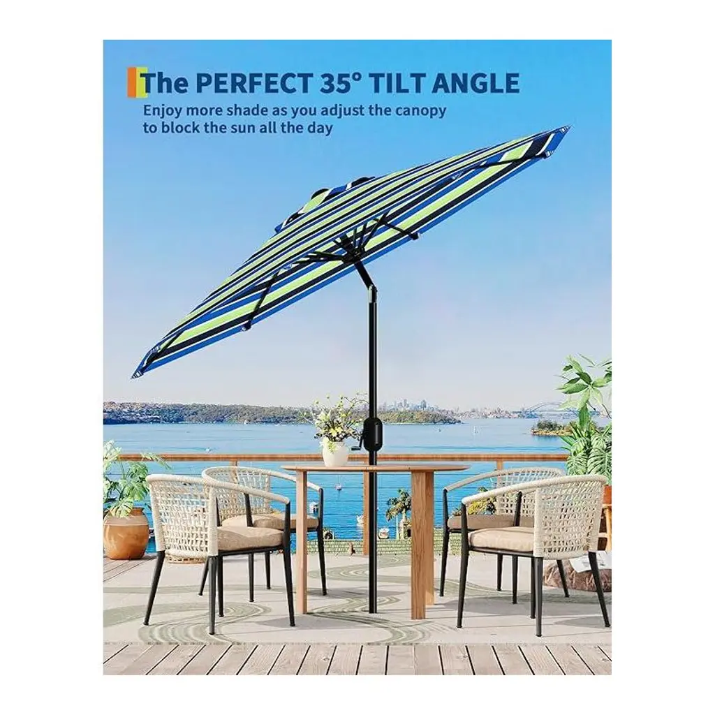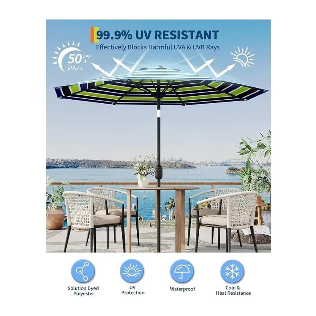 【Attention】: Due to differences in screen resolution, there may be a little color difference from image. Please kindly note about that. 【Sturdy Structure】: Our outdoor umbrellas for patio are made of iron frames, which are reinforced for more stability and durability than other aluminum frames. It was even easier to assemble with a solid screw in application that will hold up in any kind of weather. Our outdoor umbrella is functional and pretty, which is a valuable patio furniture. 【UV Protection】: Enjoy superior protection with our UPF 50+ fabric, effectively blocking over 99.9% of harmful UV rays, ensuring a safe and comfortable outdoor experience. Crafted from premium outdoor-rated 100% polyester, this sizable canopy stands up to the elements. Water beads up and rolls away, keeping you dry even on rainy days 【Easy to Adjust】: The market umbrellamakes it easy to open and close the table umbrella in seconds.You can also tilt the umbrella easily by pushing the button to block unwanted sun's rays at any angle. 【Multi Versatility】:Our large umbrella shade better for Market, Garden, Deck, Backyard, Pool and Patio Table. Enjoy your coffee time with your friends or family in the gentle breeze will never shine your eyes all the day, having a leisure time in Summer.
