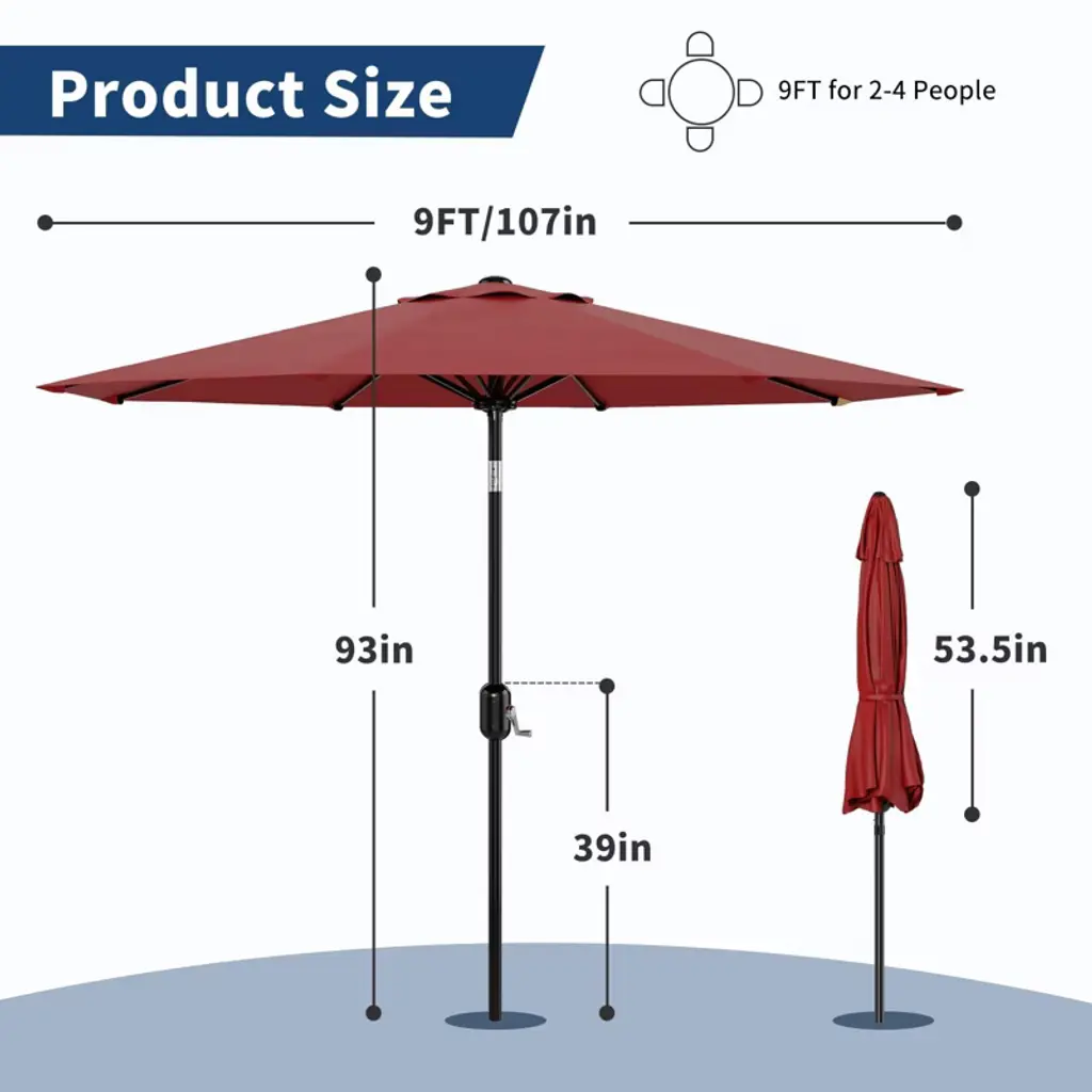 9Ft Patio Umbrella, Table Umbrella Outdoor Patio With Crank Lift & Push Button Tilt, 8 Sturdy Ribs For Yard, Deck, Pool