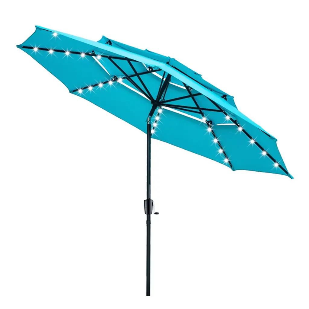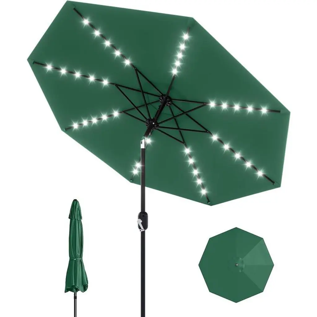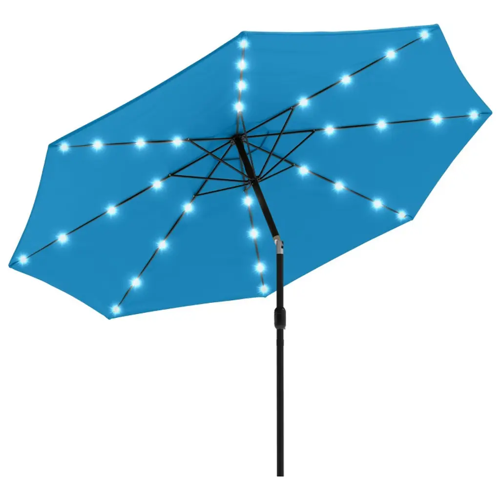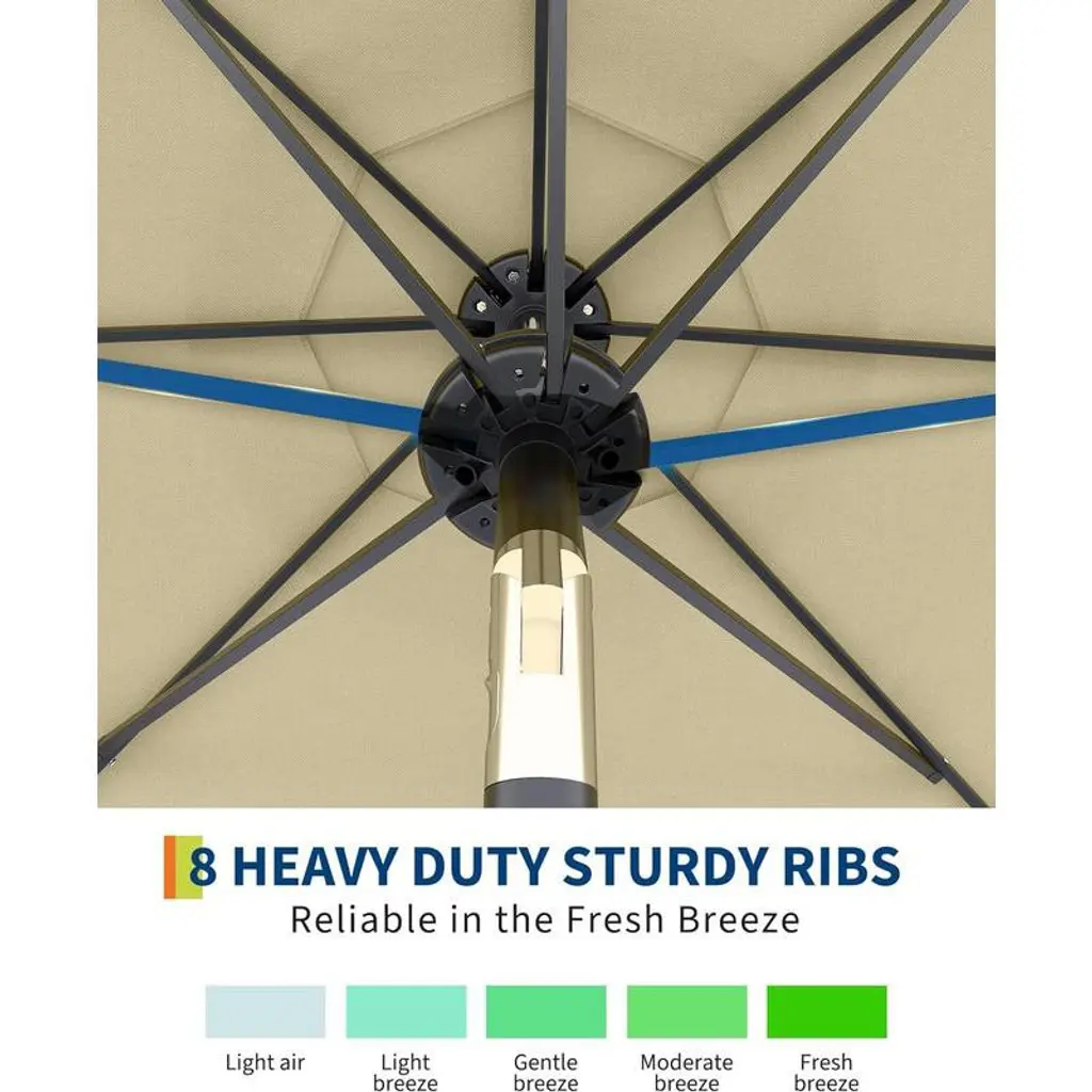 Seamless Day & Night Ambiance: 32 solar LED lights automatically illuminate at dusk, powered by an 1800mAh panel for 9-12 hours of soft, energy-free glow. Host dinners or unwind under cozy lighting—no cords, no hassle Effortless Adjustments, Safer Design: Open, close, or tilt the umbrella with one hand using the smooth hand crank and push-button mechanism. No awkward reaching or straining—just quick, intuitive control for all ages