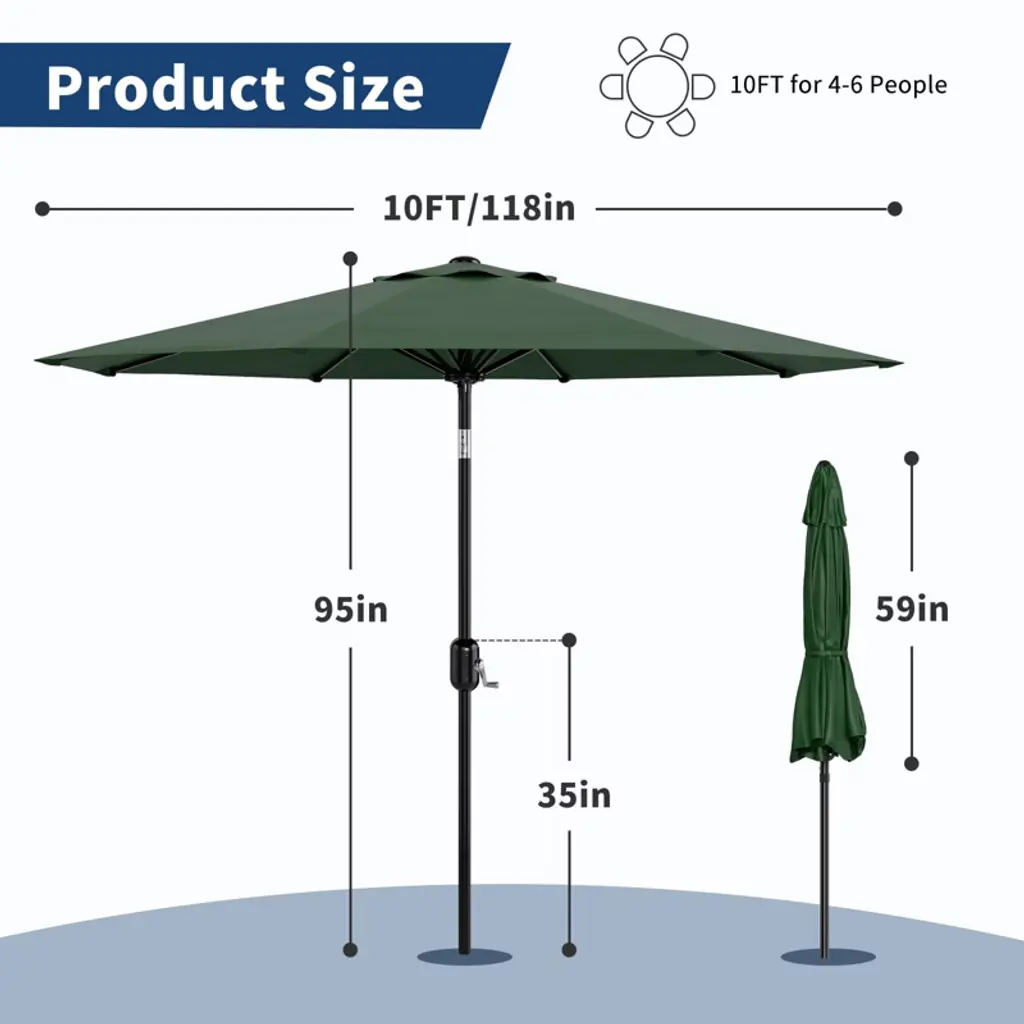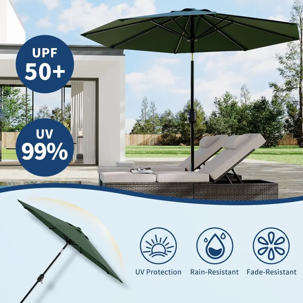 9Ft Uv Resistant Patio Umbrella, 8 Sturdy Ribs Outdoor Table Umbrella With Easy Push Button Tilt, Market Umbrella For Pool, Yard & Garden, Dark Green