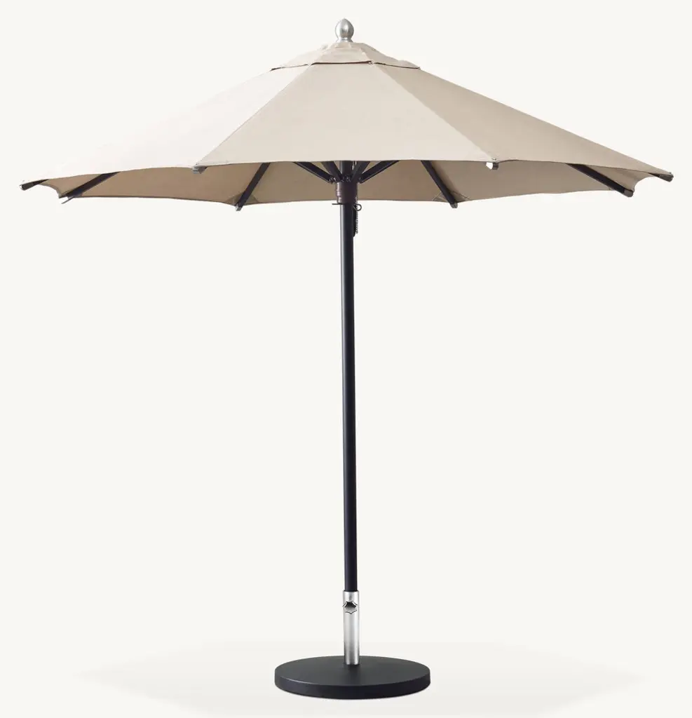 Designed exclusively for RH by a premier American umbrella maker, our powdercoated aluminum umbrella offers enduring protection from the sun. Built with an exceptionally sturdy frame, stainless steel hardware and a four-way pulley system, the durable weather- and fade-resistant canvas canopy provides expansive shade with up to 98% UV protection.