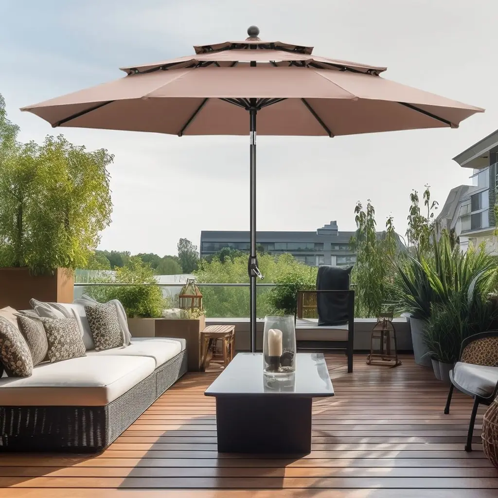 Ainfox 10ft 3-tier Vented Beach Umbrella Coffee